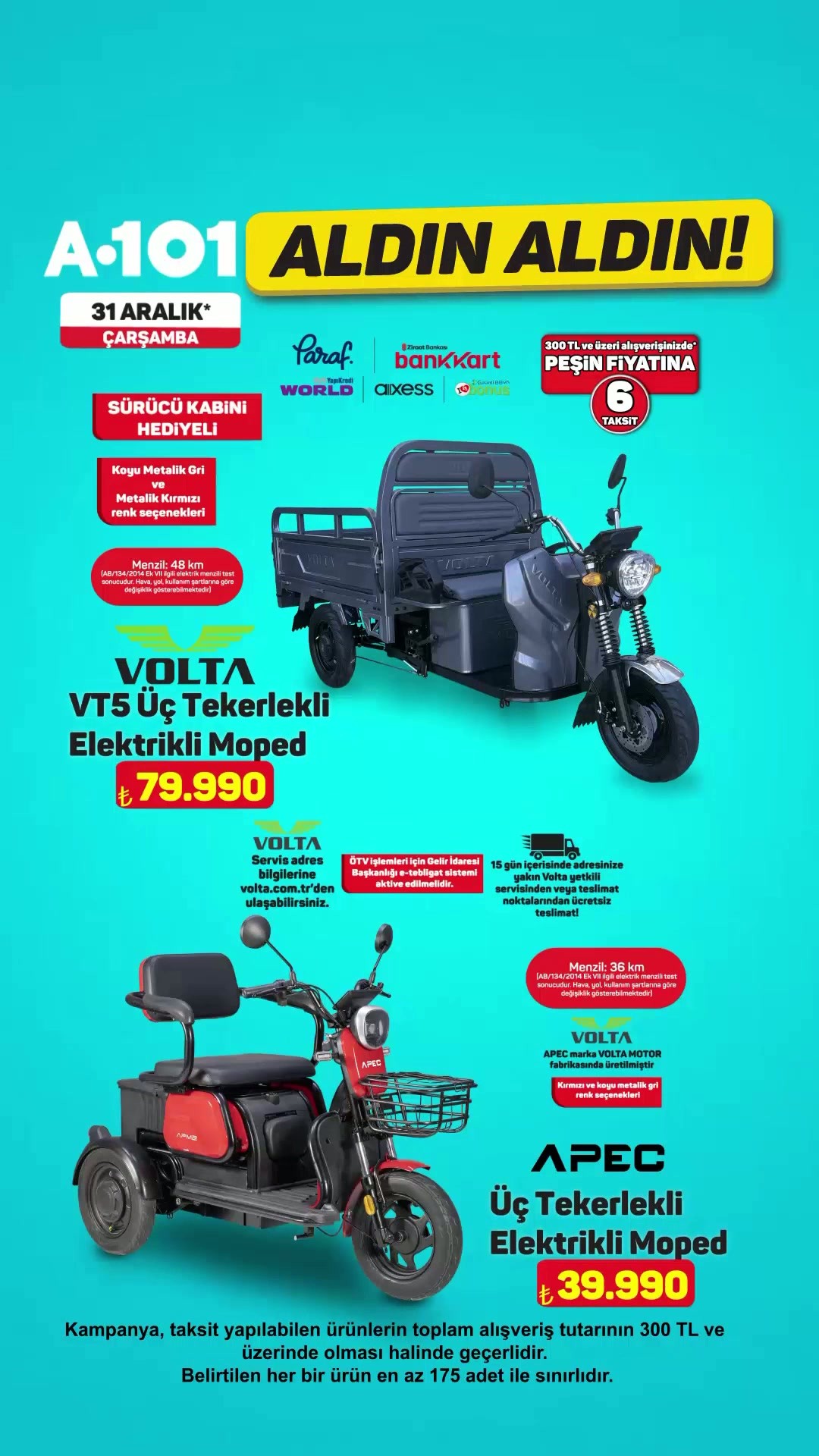 A101, 'Aldın Aldın' kampanyasının 31 Aralık'tan itibaren mağazalarda, A101 Kapıda uygulamasında ve A101 Ekstra'da başlayacağını duyurdu. Stokların farklılık gösterebileceği ve alternatif alım yollarının bulunduğu belirtildi.