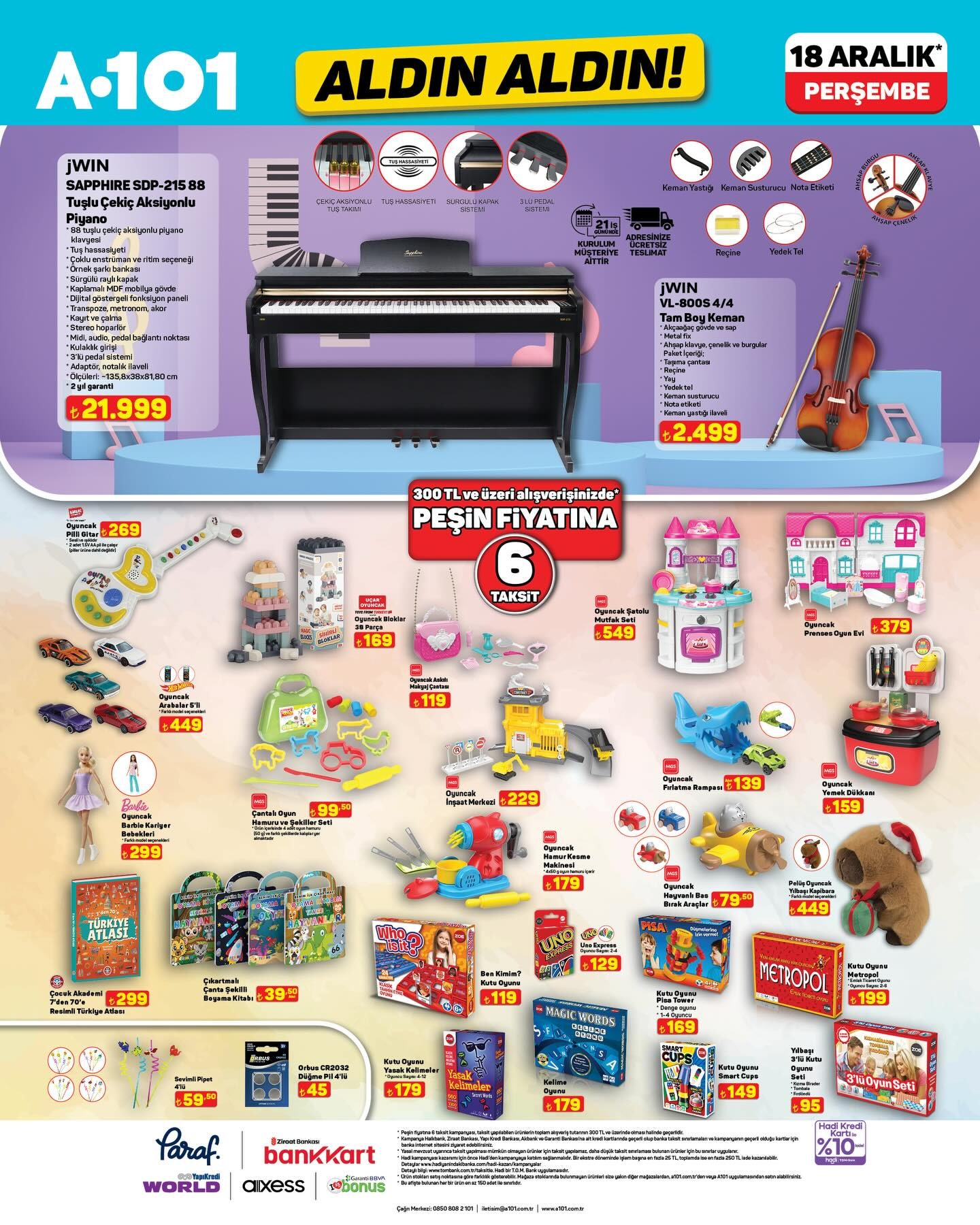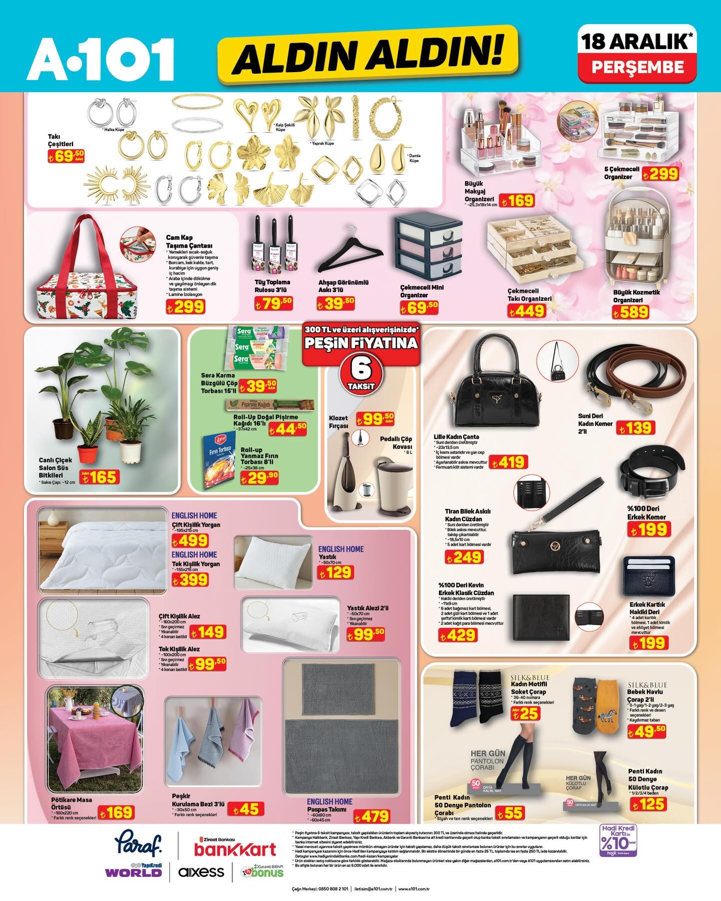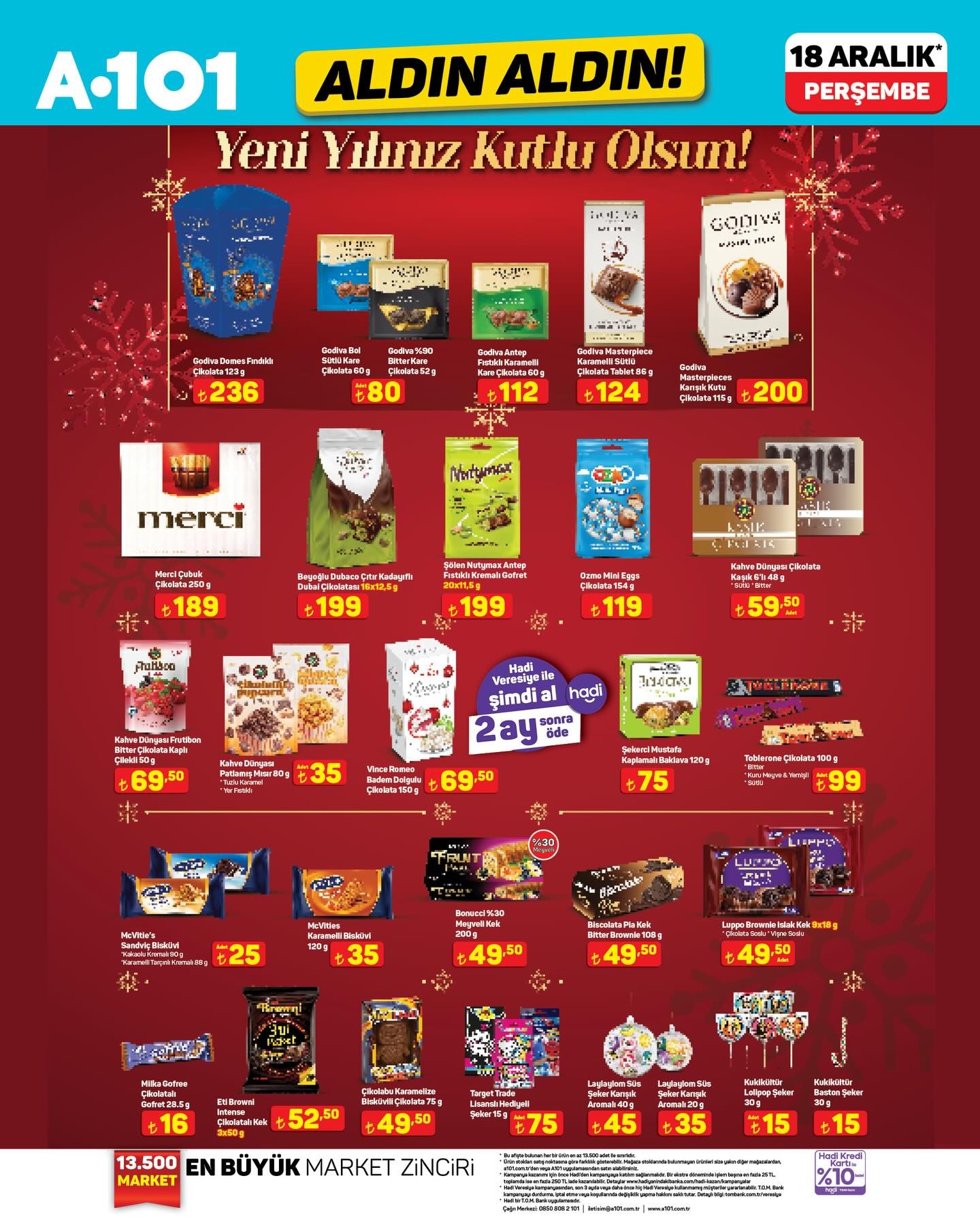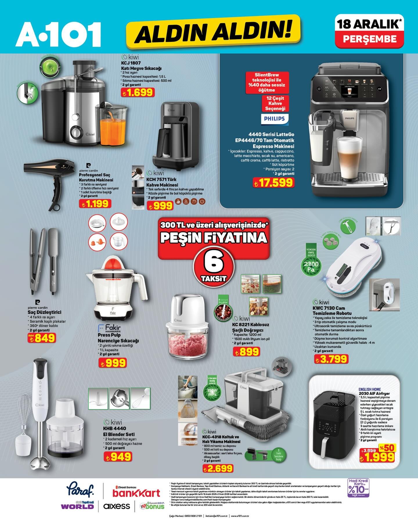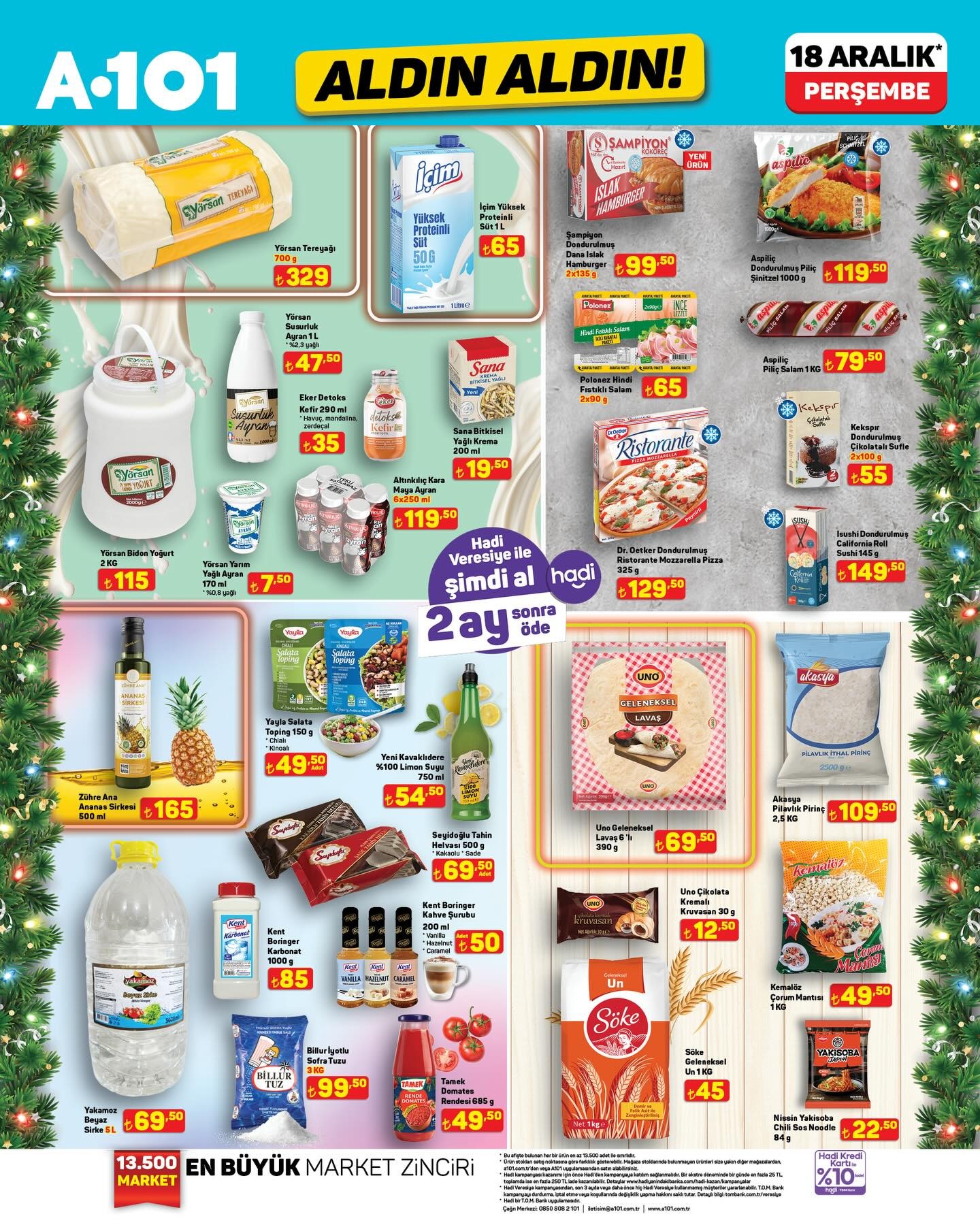 Türkiye'nin en büyük market zincirlerinden biri olan A101, her hafta merakla beklenen “Aldın Aldın” kampanyasını duyurdu. Yapılan açıklamaya göre, bu haftanın indirimli ürünleri 18 Aralık Perşembe gününden itibaren hem fiziksel mağazalarda hem de A101 Kapıda mobil uygulamasında geçerli olacak.A101 tarafından yapılan bilgilendirmede, müşterilerin yeni ve çeşitli ürünleri uygun fiyatlarla bulabileceği belirtildi. Kampanya ile ilgili detaylı ürün listesi, market zincirinin duyurusuyla birlikte kamuoyuyla paylaşıldı.Stok Bilgisi Hakkında Önemli UyarıYapılan açıklamada, ürün stoklarının satış noktalarına göre farklılık gösterebileceği vurgulandı. Müşterilerin, aradıkları ürünleri mağaza stoklarında bulamamaları durumunda, kendilerine yakın diğer mağazaları veya A101 Kapıda uygulamasını kullanabilecekleri ifade edildi. Market zinciri, ülke genelinde 13.500’e yakın şube ile hizmet vermeye devam ediyor.Editör: Haber MerkeziKaynak: Sosyal Medya