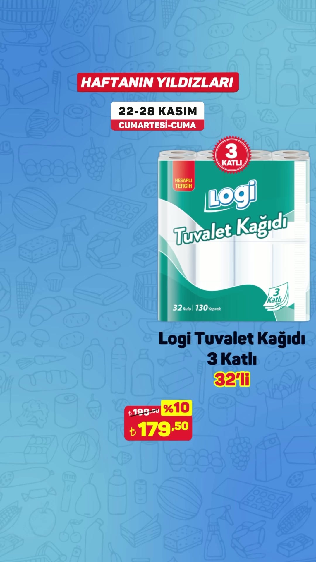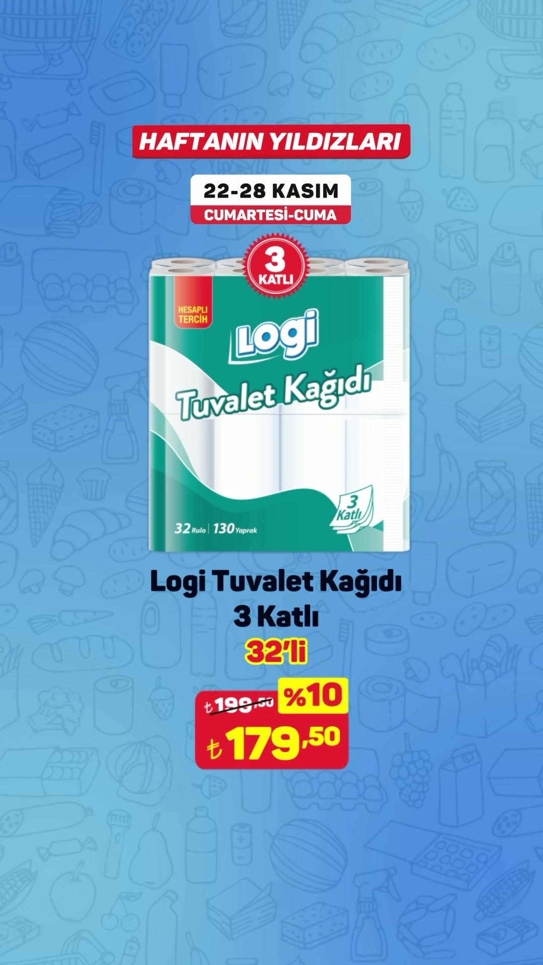 Kampanya detaylarında, ürün stoklarının satış noktalarına göre farklılık gösterebileceği belirtildi. Mağaza stoklarında bulunmayan ürünler için müşterilere, kendilerine yakın diğer mağazalardan, A101 Ekstra'dan veya A101 Kapıda uygulamasından satın alma imkanı sunulacağı ifade edildi. Öne çıkan ürünlerden biri de Logi Kağıt Havlu. 12 rulo ve 80 yaprak içeren 3 katlı Logi Kağıt Havlu, kampanya dahilinde müşterilerin beğenisine sunulacak. Kampanya, hafta boyunca devam edecek.Editör: Haber MerkeziKaynak: Sosyal Medya