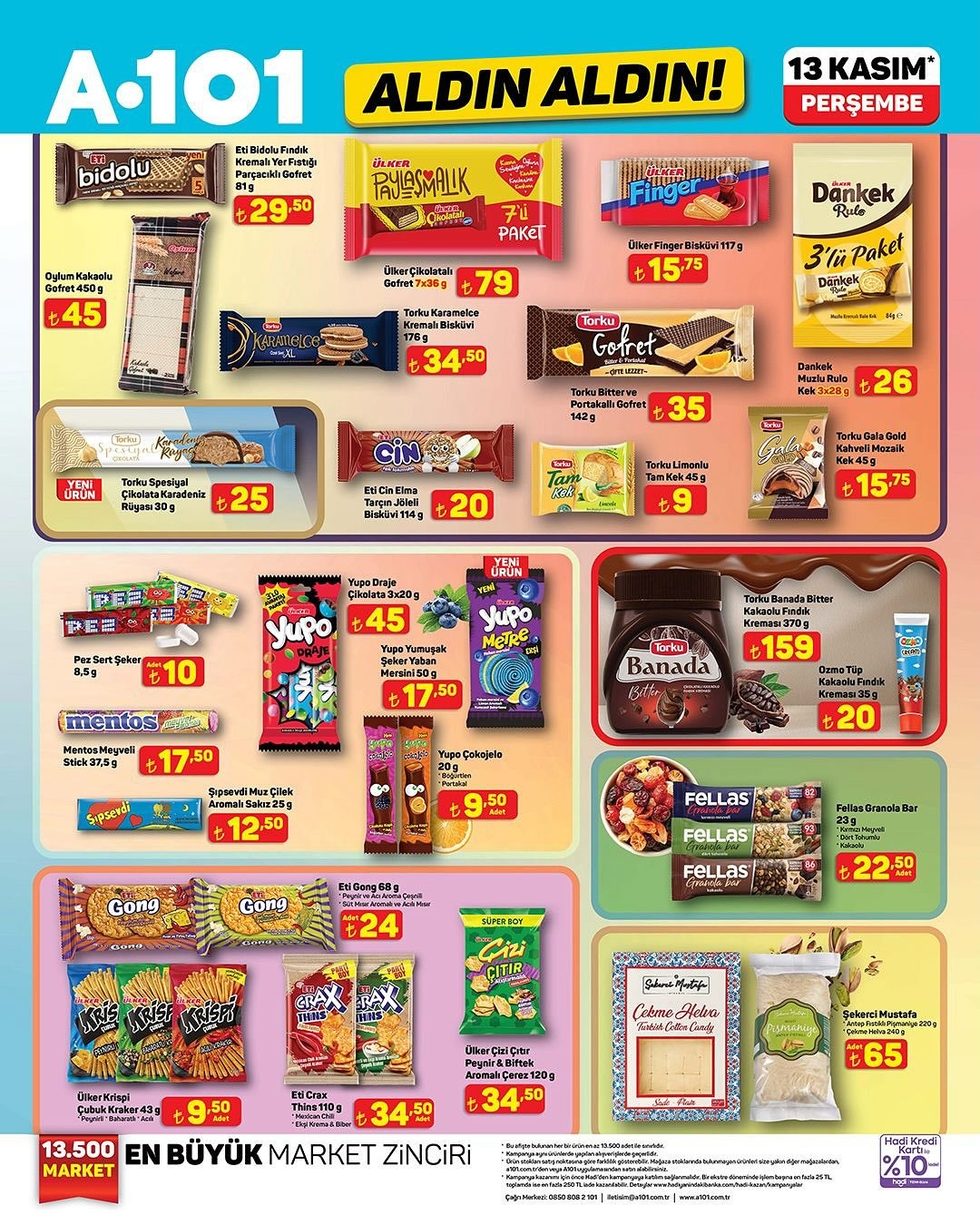 Türkiye'nin en büyük market zincirlerinden A101, 13 Kasım Perşembe gününden itibaren geçerli olacak yeni 'Aldın Aldın' kampanyasını duyurdu. Kampanya kapsamında A101 mağazalarında, A101 Kapıda uygulamasında ve A101 Ekstra platformunda birbirinden cazip ürünler tüketicilerle buluşacak.Ürün Stokları ve Satın Alma Seçenekleri