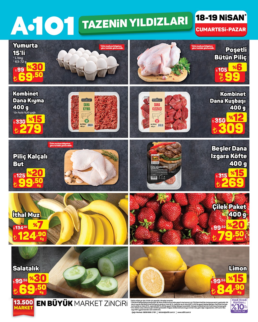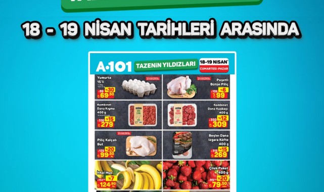 A101 marketleri, 18-19 Nisan tarihleri arasında geçerli olacak özel bir kampanya ile taze meyve ve sebzelerde indirimli fiyatlar sunuyor. Kampanya, A101 mağazalarının yanı sıra A101 Kapıda mobil uygulaması üzerinden de faydalanılabilecek.