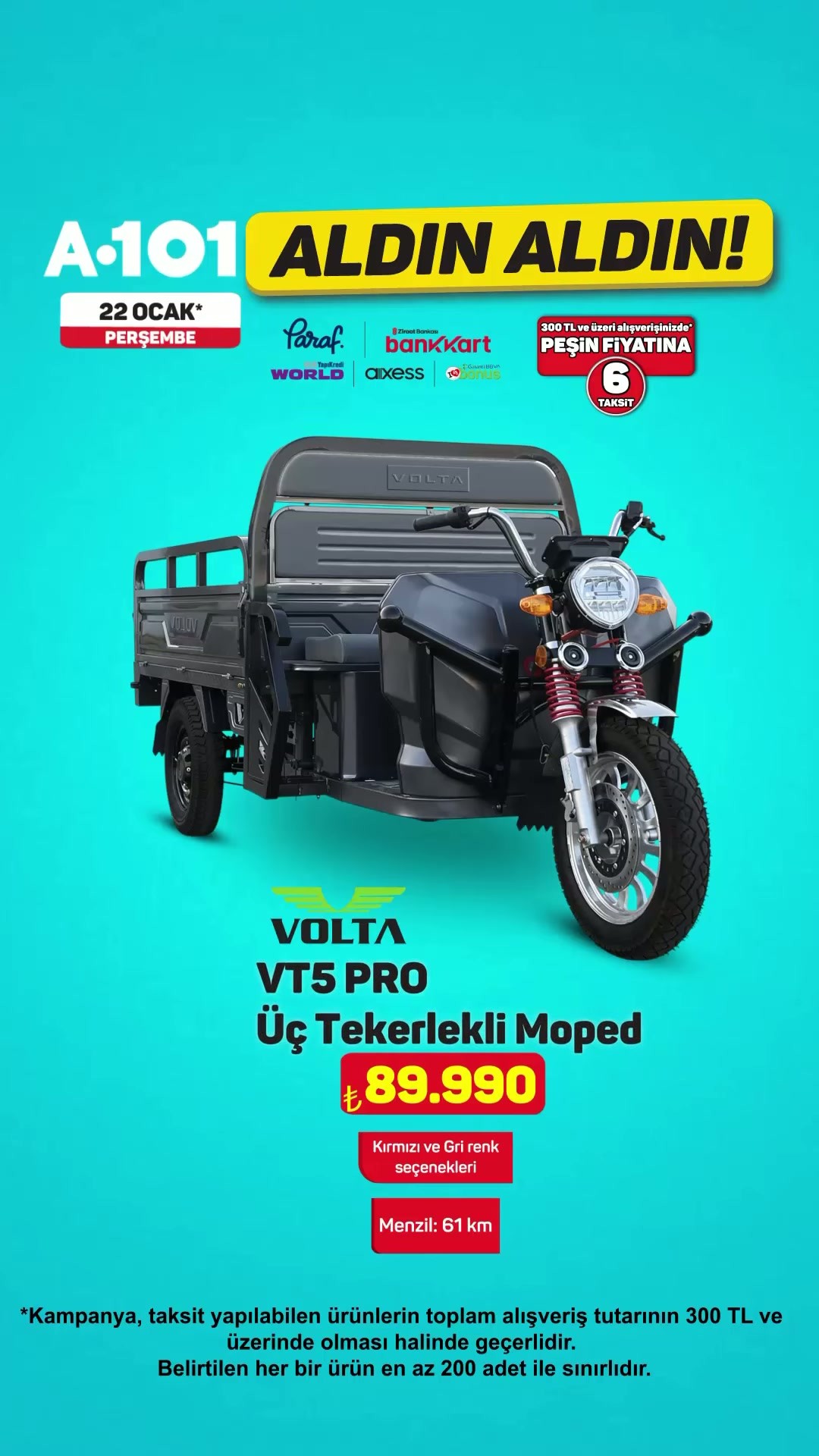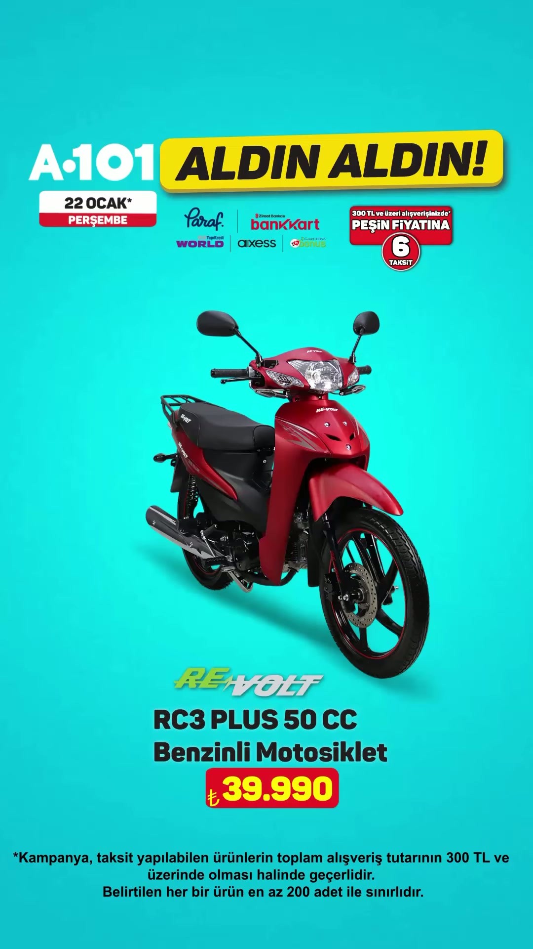 Ayrıca, kampanya ile ilgili olarak Paraf, World, Ziraat Bankası ve Axess/Bank Kart kullanıcılarına özel bir taksit avantajı sunuluyor. Belirtilen kartlarla 300 TL ve üzeri alışveriş tutarında, peşin fiyatına 6 taksit imkanı sağlanacak. Bu taksit kampanyasının yalnızca taksit yapılabilen ürünlerin toplam alışveriş tutarının 300 TL ve üzeri olması halinde geçerli olduğu vurgulandı.
