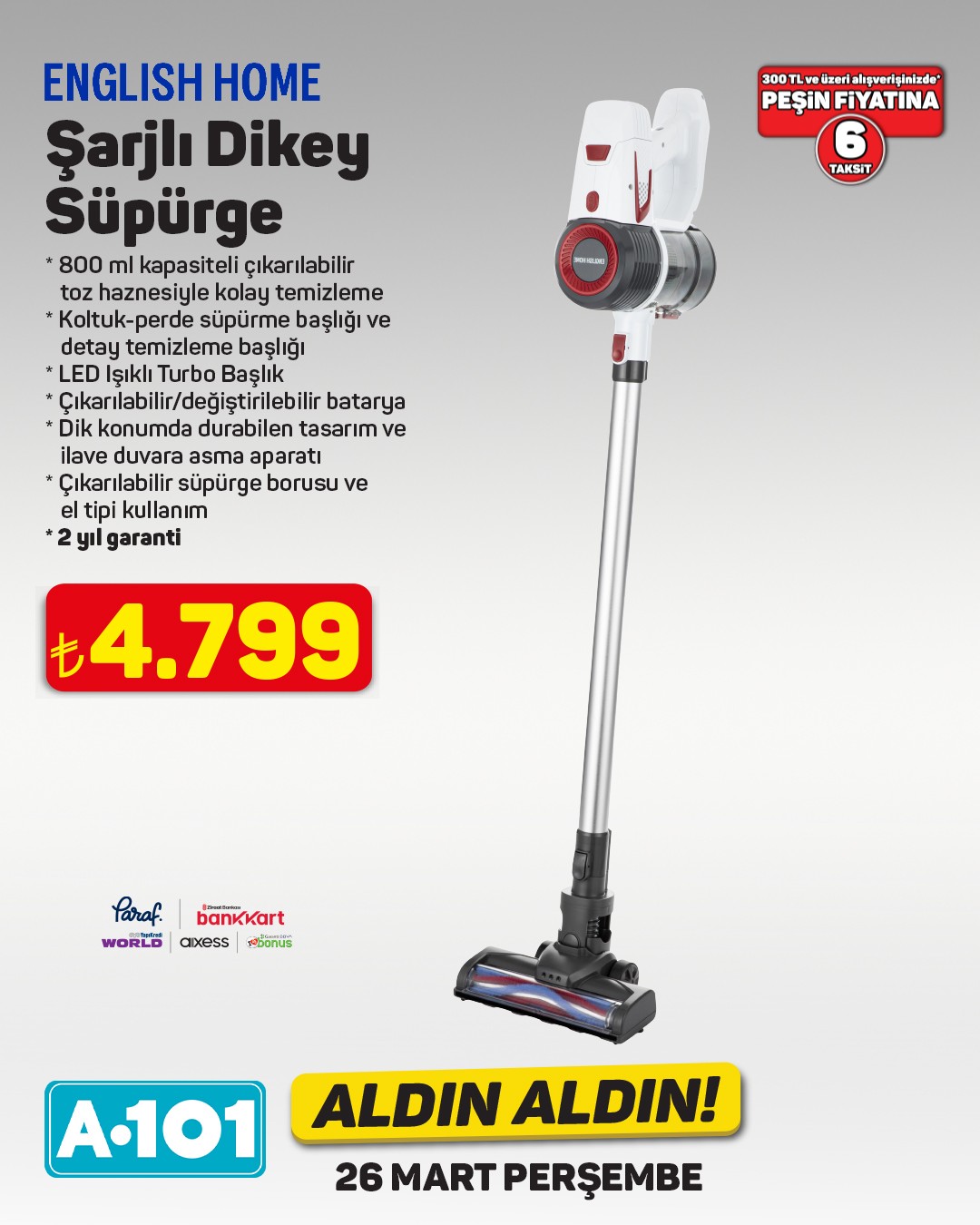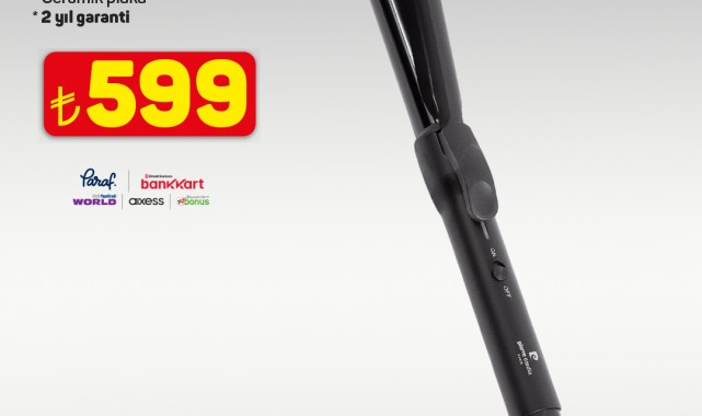 A101, 26 Mart Perşembe gününden itibaren geçerli olacak "Aldın Aldın" kampanyasıyla yeni ürünleri müşterileriyle buluşturuyor. Bu haftanın öne çıkan ürünlerinden biri de Pierre Cardin marka saç maşası olacak. Ürün, A101 mağazalarında, A101 Kapıda uygulaması ve A101 Ekstra platformunda satışa sunulacak.Kampanya kapsamında satışa sunulacak olan Pierre Cardin saç maşası, 28 mm çapında, hızlı ısınma özelliğine sahip ve 200°C'ye kadar kullanım imkanı sunuyor. Seramik plakalı ve 2 yıl garantili olan ürünün fiyatı 599 TL olarak belirlendi. Ayrıca, 300 TL ve üzeri alışverişlerde Paraf, World, Bankkart, Axess ve Bonus kartlara özel peşin fiyatına 6 taksit imkanı da sunulacak.Editör: Haber Merkezi