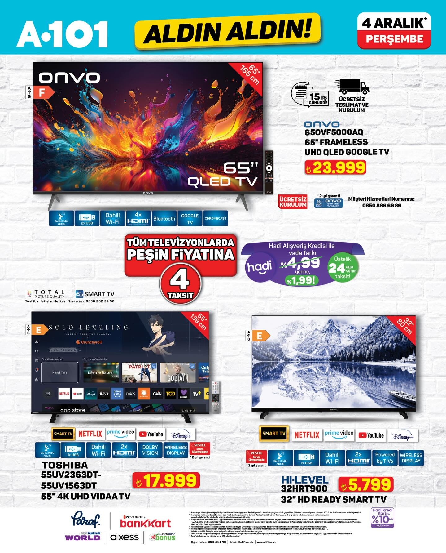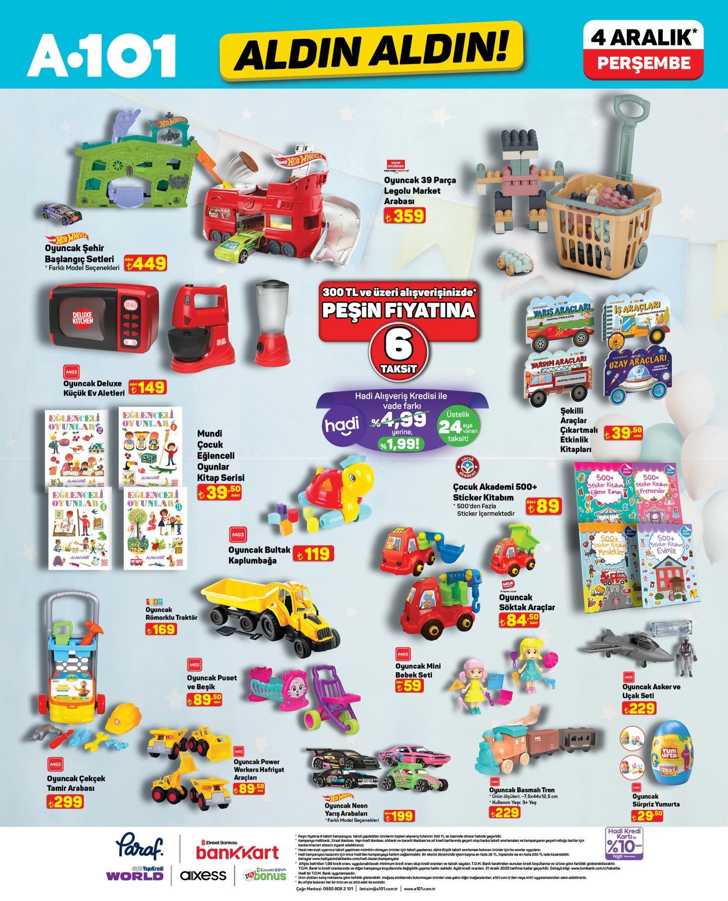 Türkiye'nin önde gelen perakende zincirlerinden A101, 4 Aralık Perşembe gününden itibaren geçerli olacak yeni 'Aldın Aldın' kampanyasını duyurdu. Müşteriler, bu kampanya kapsamında çeşitli ürünlere özel fiyatlarla sahip olabilecek.Kampanya, A101 mağazalarının yanı sıra, mobil uygulama olan A101 Kapıda ve çevrimiçi alışveriş platformu A101 Ekstra üzerinden de erişilebilir olacak. Bu geniş dağıtım ağı sayesinde tüketiciler, alışveriş tercihlerine göre diledikleri kanaldan kampanyalı ürünleri temin edebilecekler.Ürün Stokları ve Alternatif Kanallar