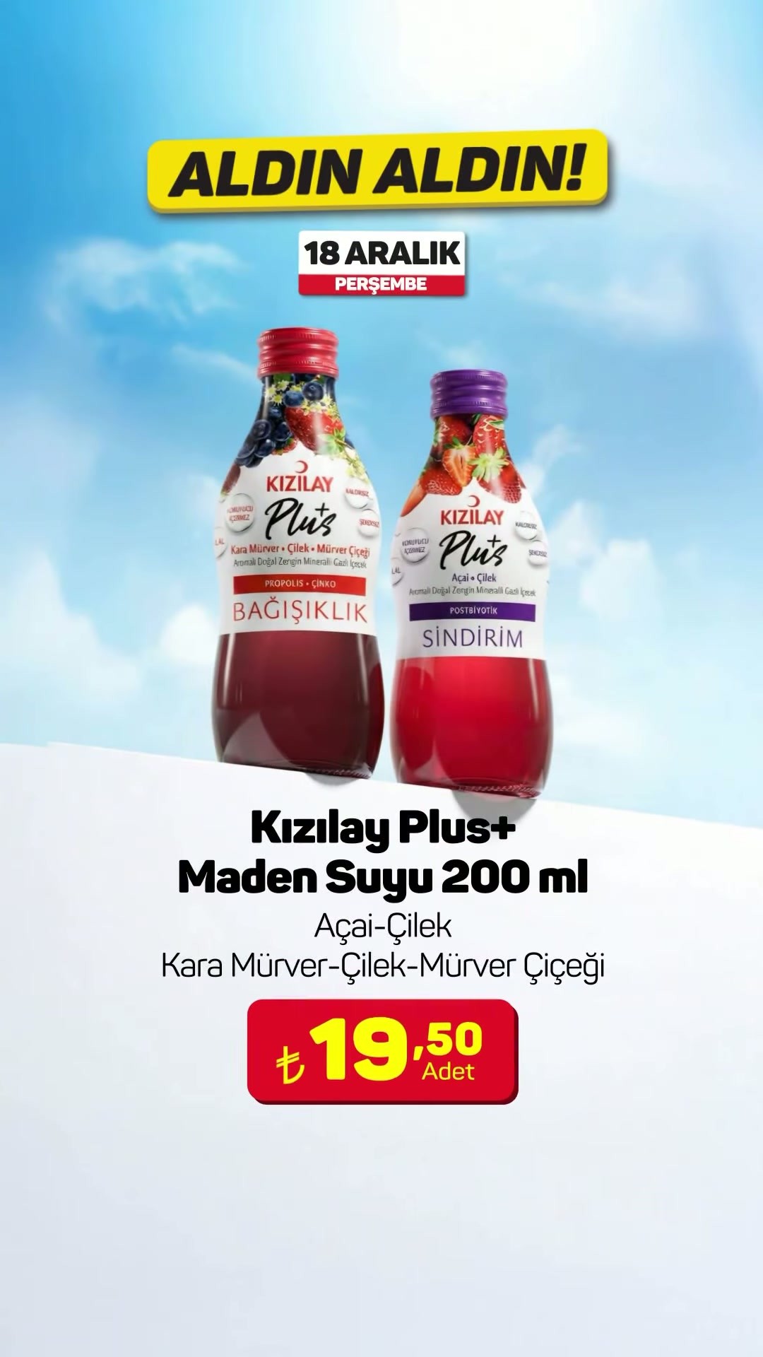 Perakende zinciri A101, her hafta düzenlediği “Aldın Aldın” kampanyaları kapsamında yeni bir ürünü daha raflarına eklediğini duyurdu.Kampanya kapsamında, Kızılay Plus+ Maden Suyu 200 ml ürününün 18 Aralık itibarıyla hem fiziksel mağazalarda hem de A101 Kapıda mobil uygulamasında satışa sunulacağı açıklandı.Yapılan açıklamada, ürün stoklarının satış noktasına göre farklılık gösterebileceği belirtildi. Müşterilerin, mağaza stoklarında bulamadıkları ürünleri kendilerine en yakın diğer mağazalardan veya A101 Kapıda uygulaması üzerinden temin edebilecekleri ifade edildi.Editör: Haber MerkeziKaynak: Sosyal Medya