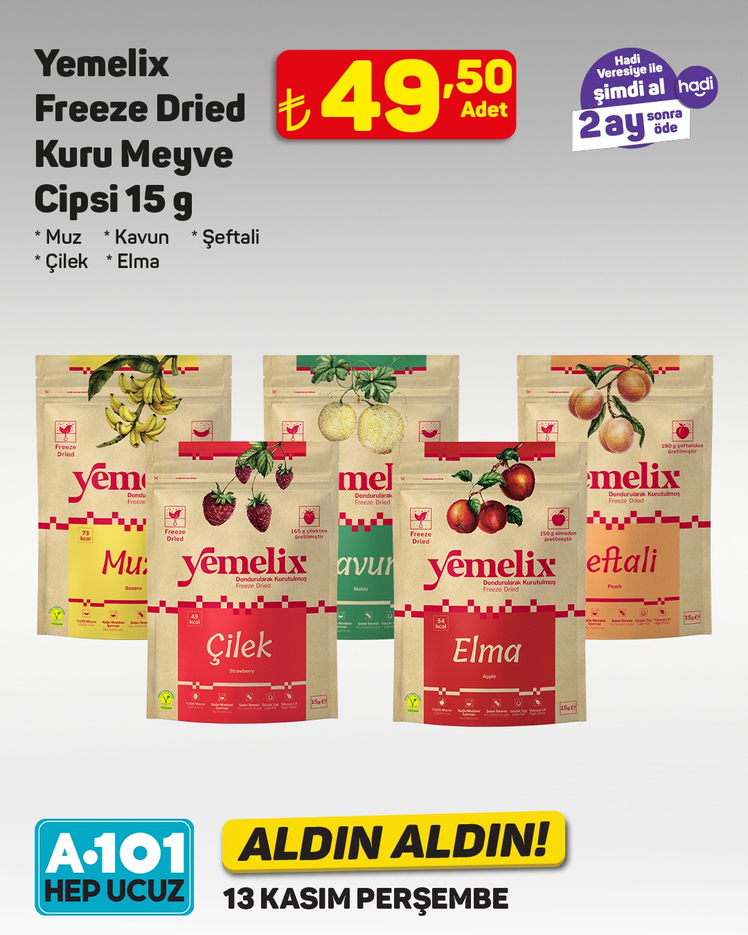 A101, 13 Kasım'dan itibaren geçerli olacak 'Aldın Aldın' kampanyasında organik kuru incirleri satışa sunuyor. Tüketiciler, 'Hadi Veresiye' ile ödemeyi 2 ay sonra yapabilecek.