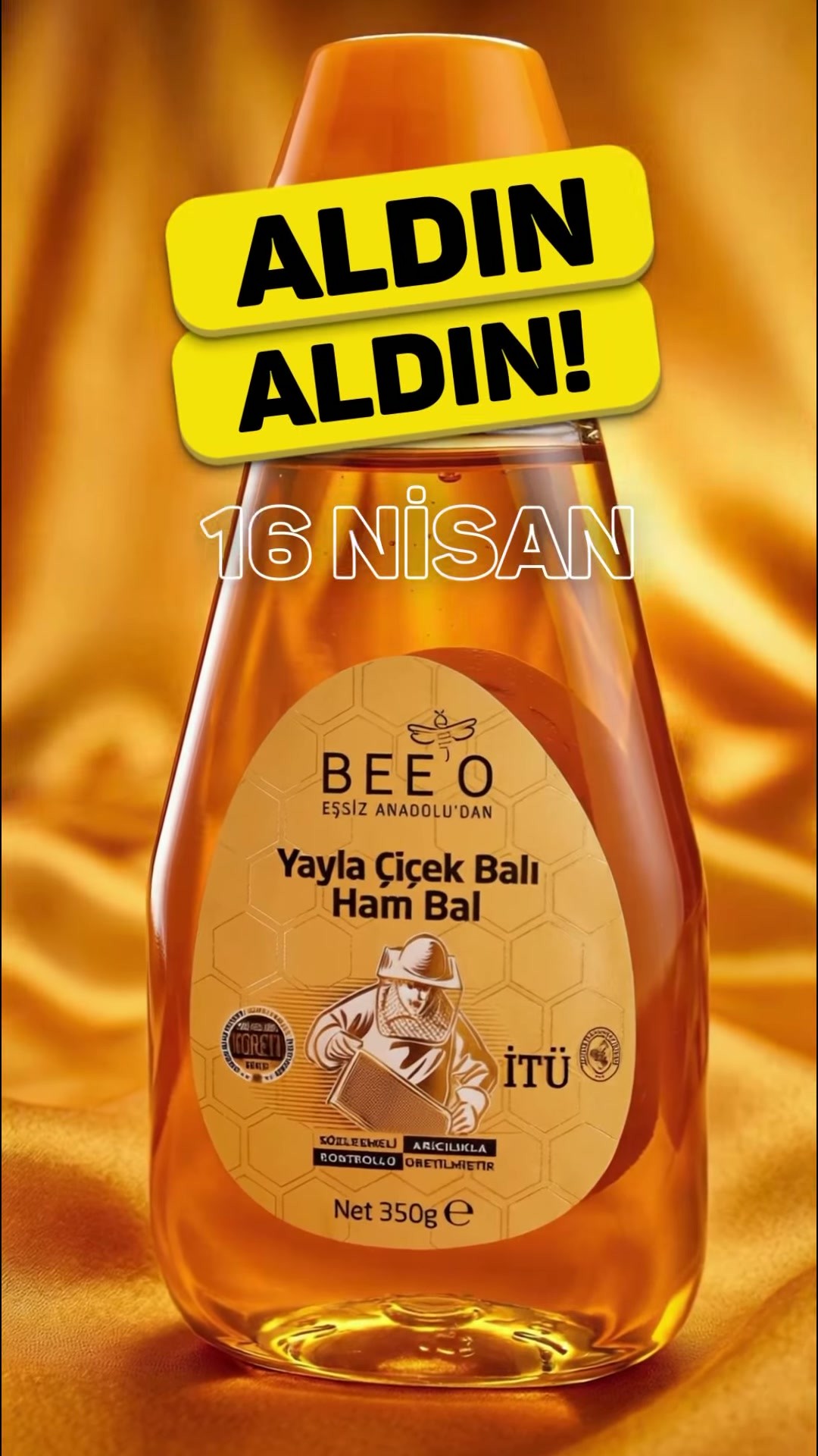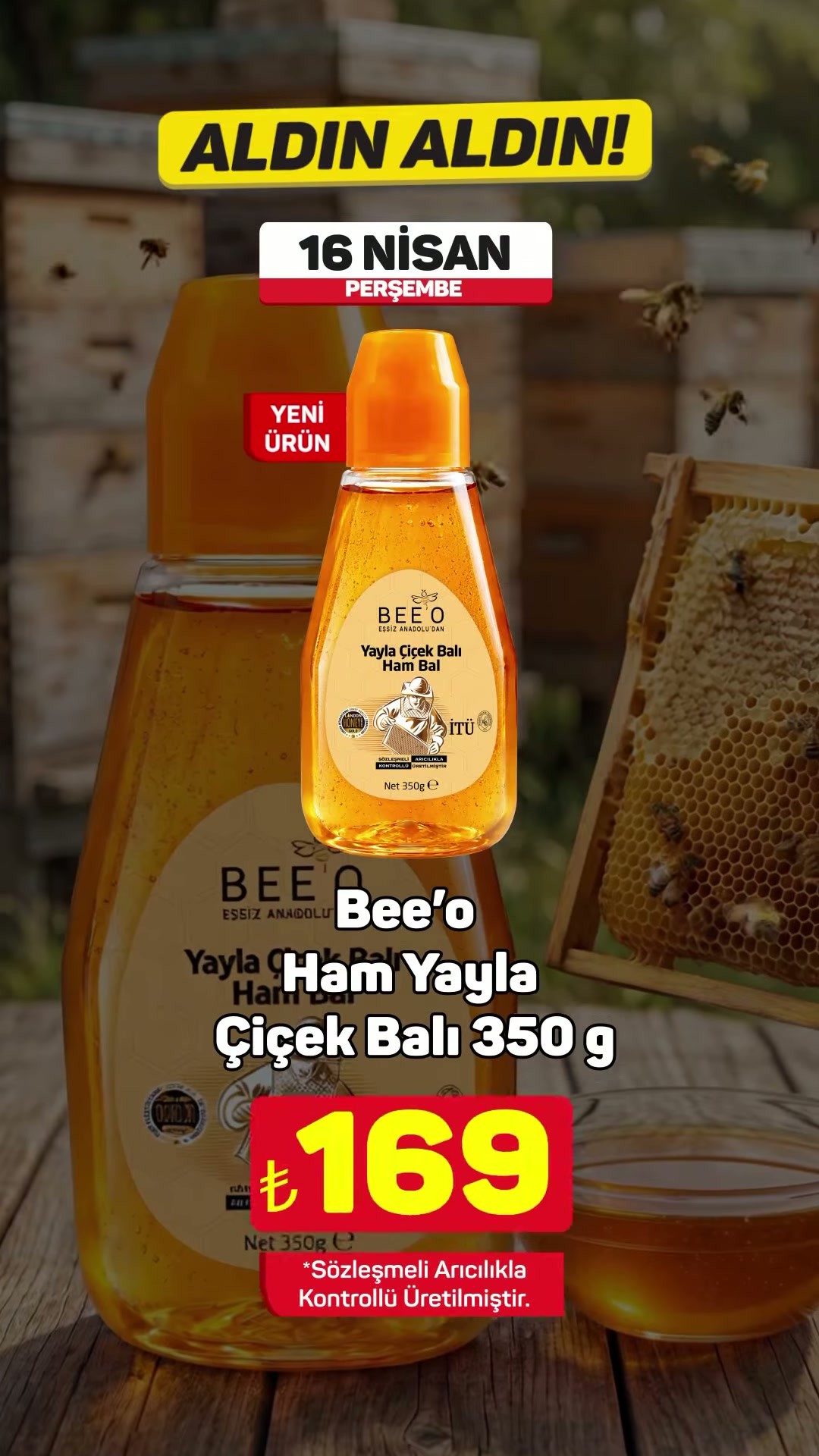 A101 marketleri, 16 Nisan'dan itibaren geçerli olacak yeni bir kampanyayla Bee'o Ham Yayla Çiçek Balı'nı müşterilerine sunuyor. Kampanya kapsamında 350 gramlık ürün, hem mağazalarda hem de A101 Kapıda mobil uygulaması üzerinden satışa sunulacak.Kampanyanın detaylarına göre, 'Aldın Aldın!' sloganıyla duyurulan bu özel fırsat, bal severler için kaçırılmayacak bir seçenek olarak öne çıkıyor. Ürün stoklarının mağazadan mağazaya farklılık gösterebileceği belirtilirken, tüketicilere yakın diğer mağazalardan veya A101 Kapıda uygulaması aracılığıyla ürüne ulaşma imkanı sunuluyor.Editör: Haber Merkezi