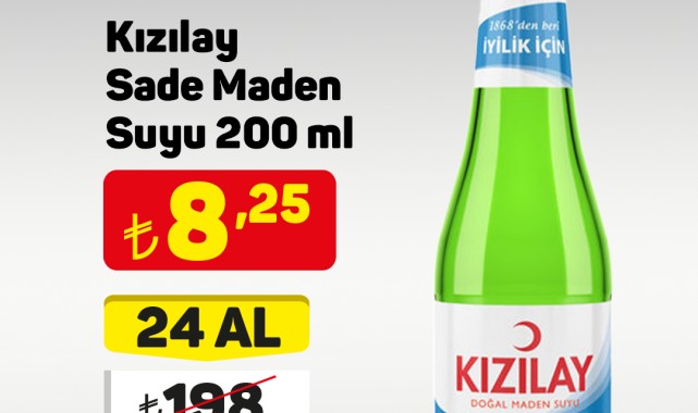 Perakende devi A101, yeni bir indirim kampanyasını duyurdu. Market zinciri tarafından yapılan açıklamada, “Çok Al Az Öde” sloganıyla tüketicilere avantajlı fiyatlar sunulacağı belirtildi.Kampanya kapsamında öne çıkan ürünlerden biri de Kızılay Sade Maden Suyu oldu. A101, 200 ml’lik Kızılay Sade Maden Suyu için özel bir paketleme fırsatı sundu.İndirimli fiyat detaylarına göre, 24 adetlik Kızılay Doğal Maden Suyu (Afyonkarahisar kaynaklı) normalde ₺198 olan fiyatıyla satışa sunulurken, kampanya kapsamında ₺170’den alıcı bulacak.A101, bu fırsatların hem fiziksel mağazalarında hem de A101 Kapıda uygulaması üzerinden geçerli olduğunu hatırlattı. Açıklamada ayrıca, ürün stoklarının satış noktasına göre farklılık gösterebileceği ve mağaza stoklarında bulunmayan ürünlerin diğer mağazalardan veya mobil uygulama üzerinden temin edilebileceği bilgisi paylaşıldı.Editör: Haber MerkeziKaynak: Sosyal Medya