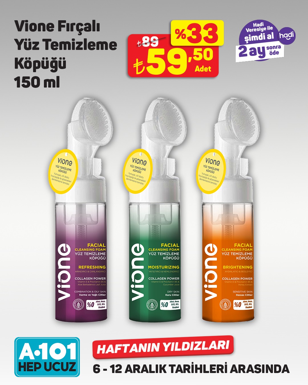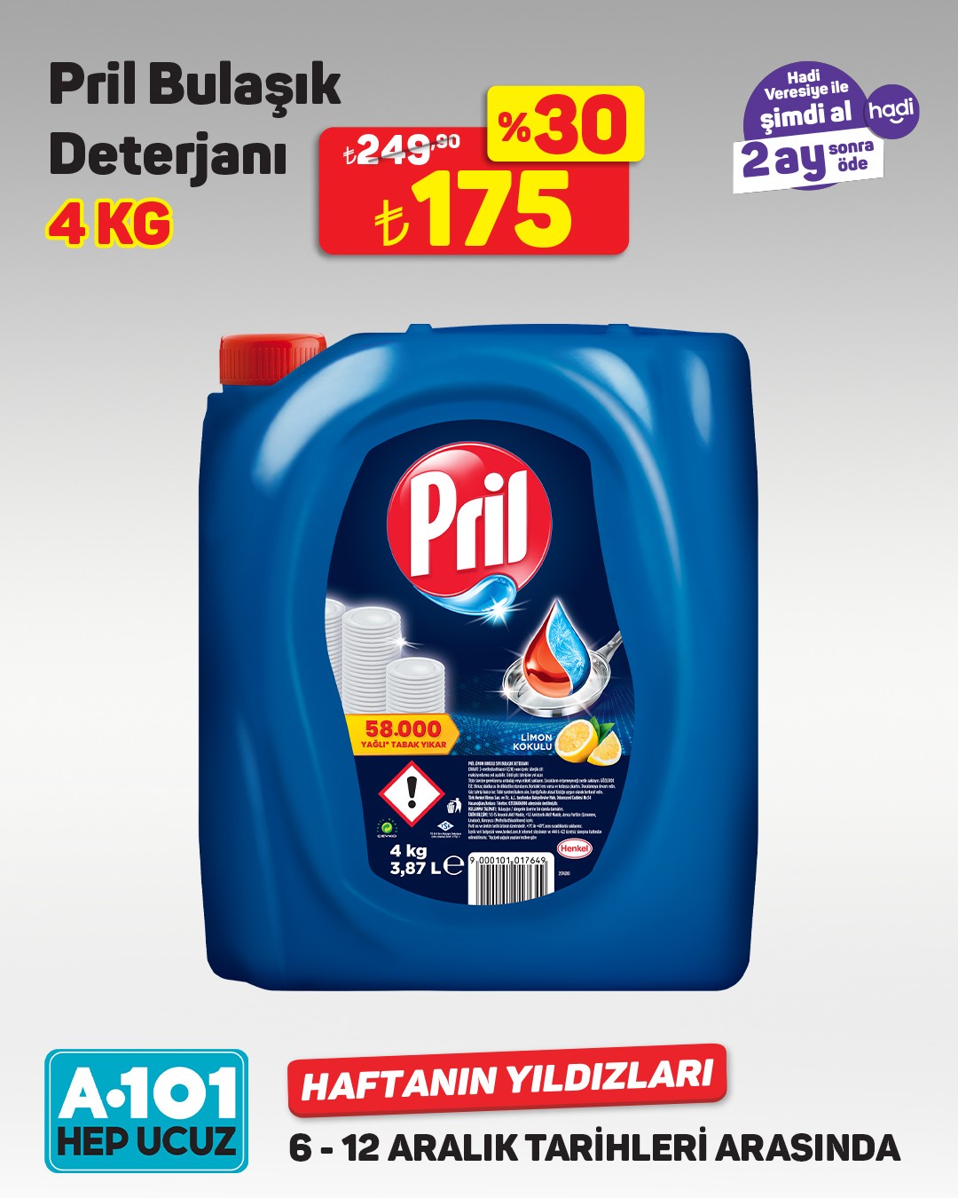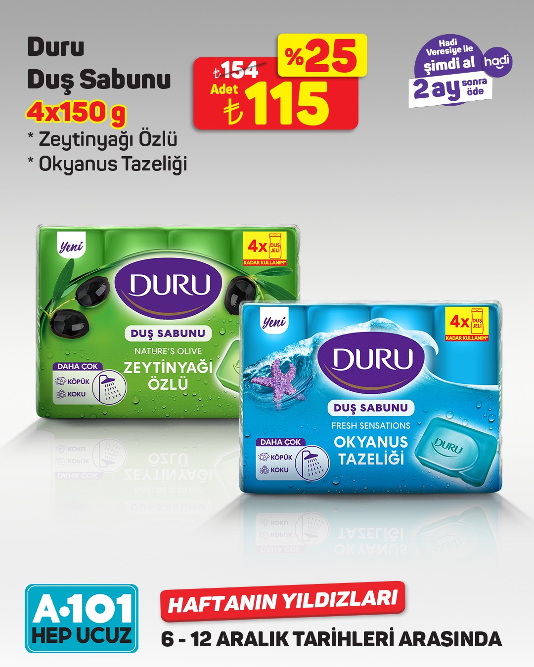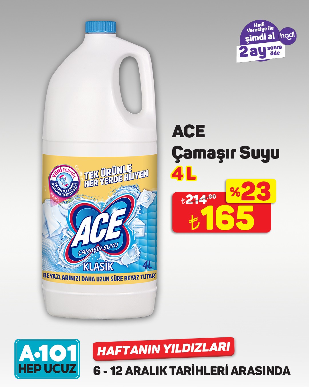 A101, 6-12 Aralık tarihleri arasında geçerli olacak 'Haftanın Yıldızları' kampanyasını duyurdu. Kampanya, mağazalar, A101 Kapıda ve A101 Ekstra'da geçerli olacak.