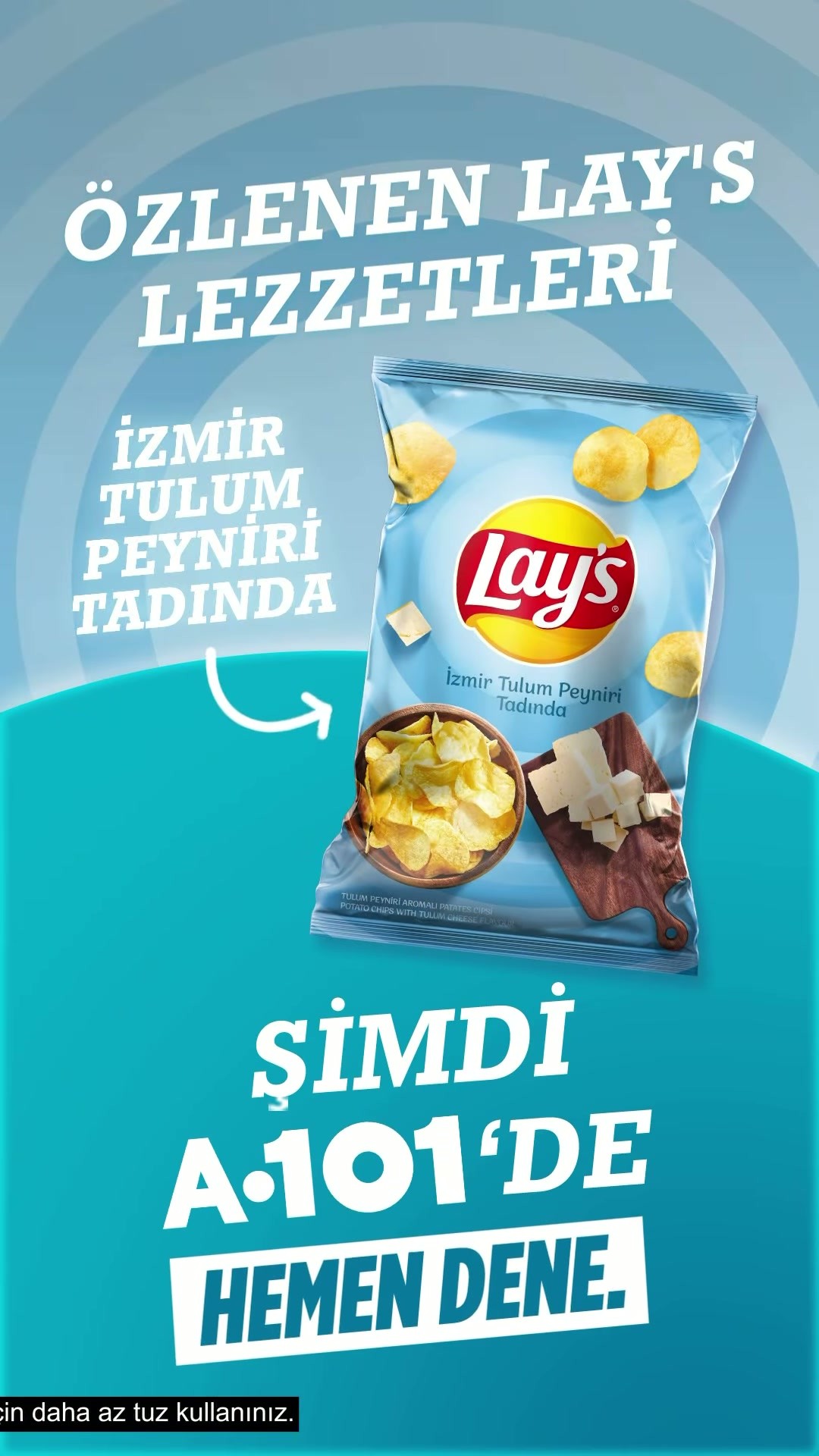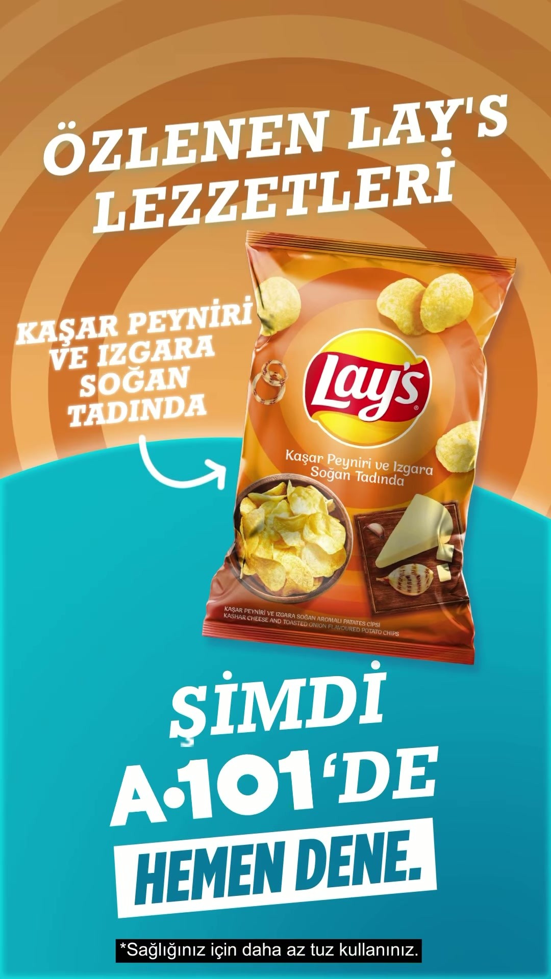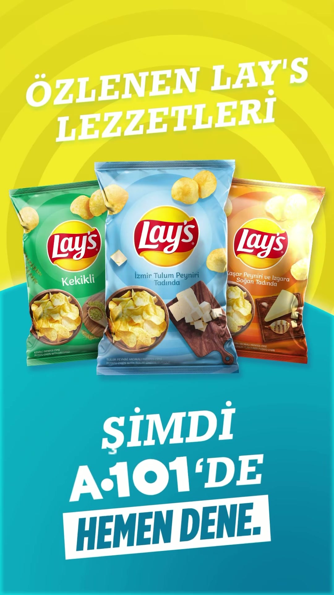 A101 marketleri, Kekikli İzmir Tulum Peyniri Tadında ve Kaşar Peyniri ve Izgara Soğan Tadında gibi özlenen Lay's lezzetlerini müşterileriyle buluşturuyor. Nostaljik tatlar raflardaki yerini aldı.