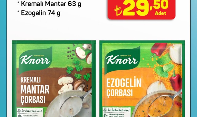 A101'in duyurusuna göre, bu özel tarihler arasında Knorr markasının Kremalı Mantar Çorbası ve Ezogelin Çorbası gibi ürünlerinde %25'e varan indirimler yer alıyor. Kremalı Mantar Çorbası 63 gramlık paketlerde 39,50 TL'den, Ezogelin Çorbası ise 74 gramlık paketlerde 29,50 TL'den satışa sunuluyor.A101 tarafından yapılan açıklamada, ürün stoklarının satış noktalarına göre farklılık gösterebileceği belirtildi. Mağaza stoklarında bulunmayan ürünlerin ise en yakın diğer mağazalardan veya A101 Kapıda uygulaması üzerinden temin edilebileceği ifade edildi.Editör: Haber MerkeziKaynak: Sosyal Medya