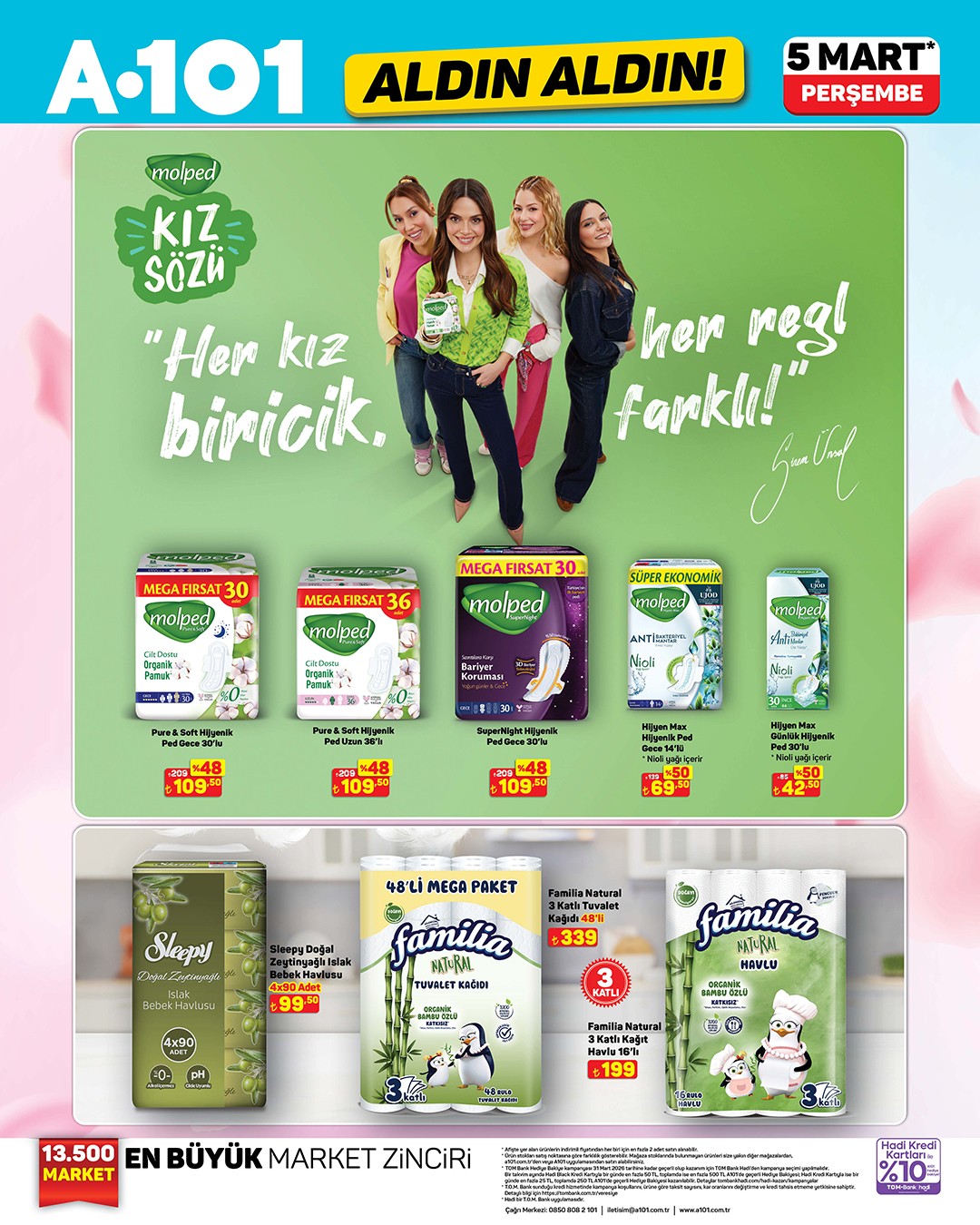 A101, 5 Mart'tan itibaren geçerli olacak yeni 'Aldın Aldın' kampanyasını duyurdu. Kampanya kapsamında Molped ve Familia markalarına ait ürünlerde özel indirimler sunulacak.