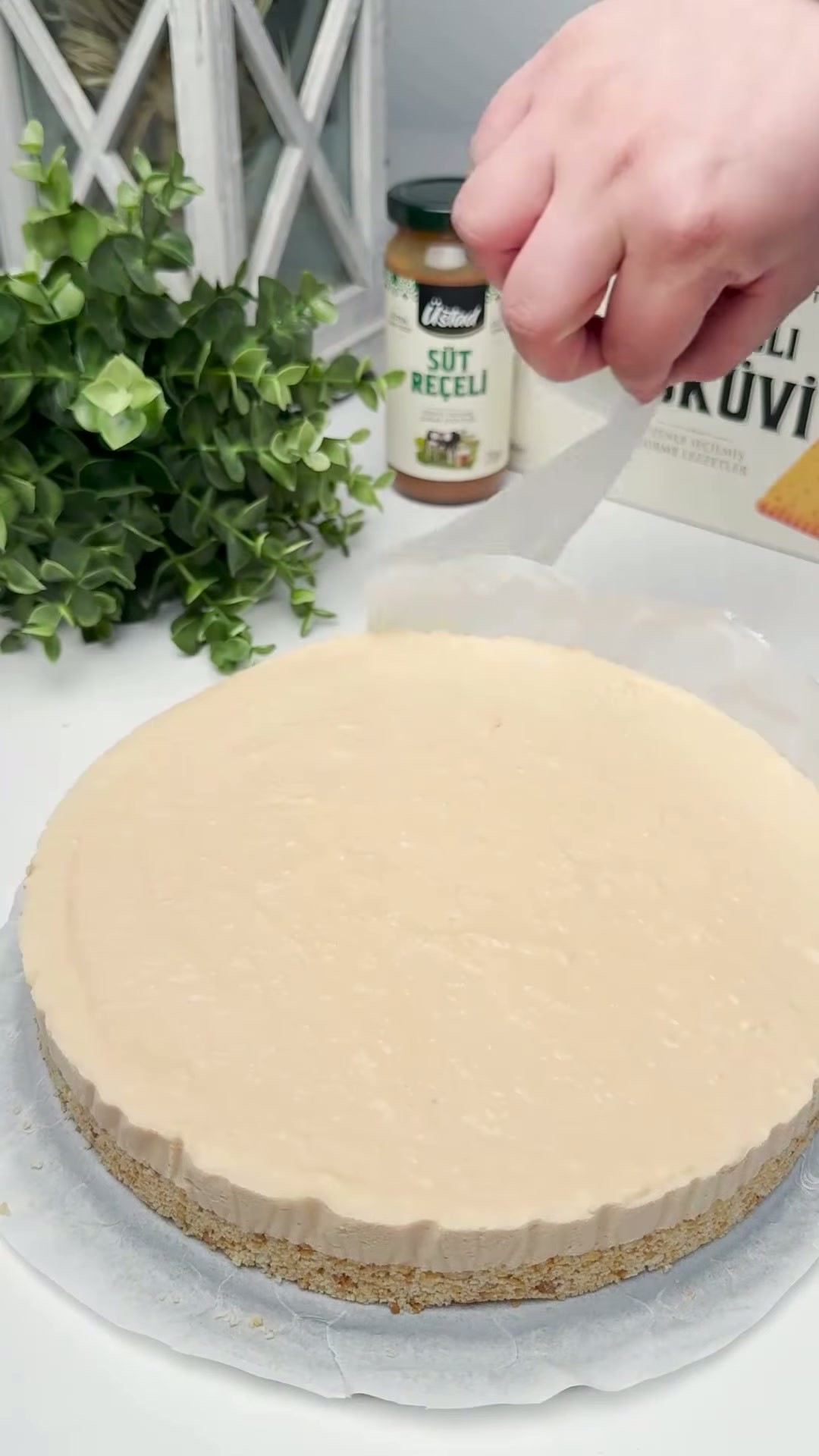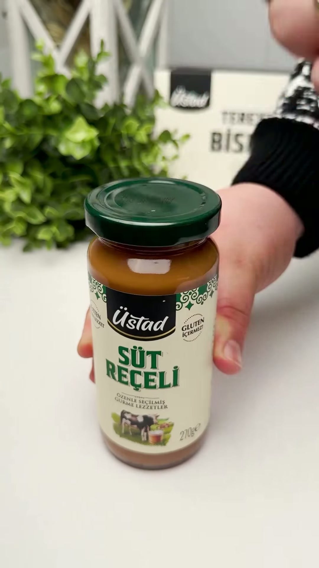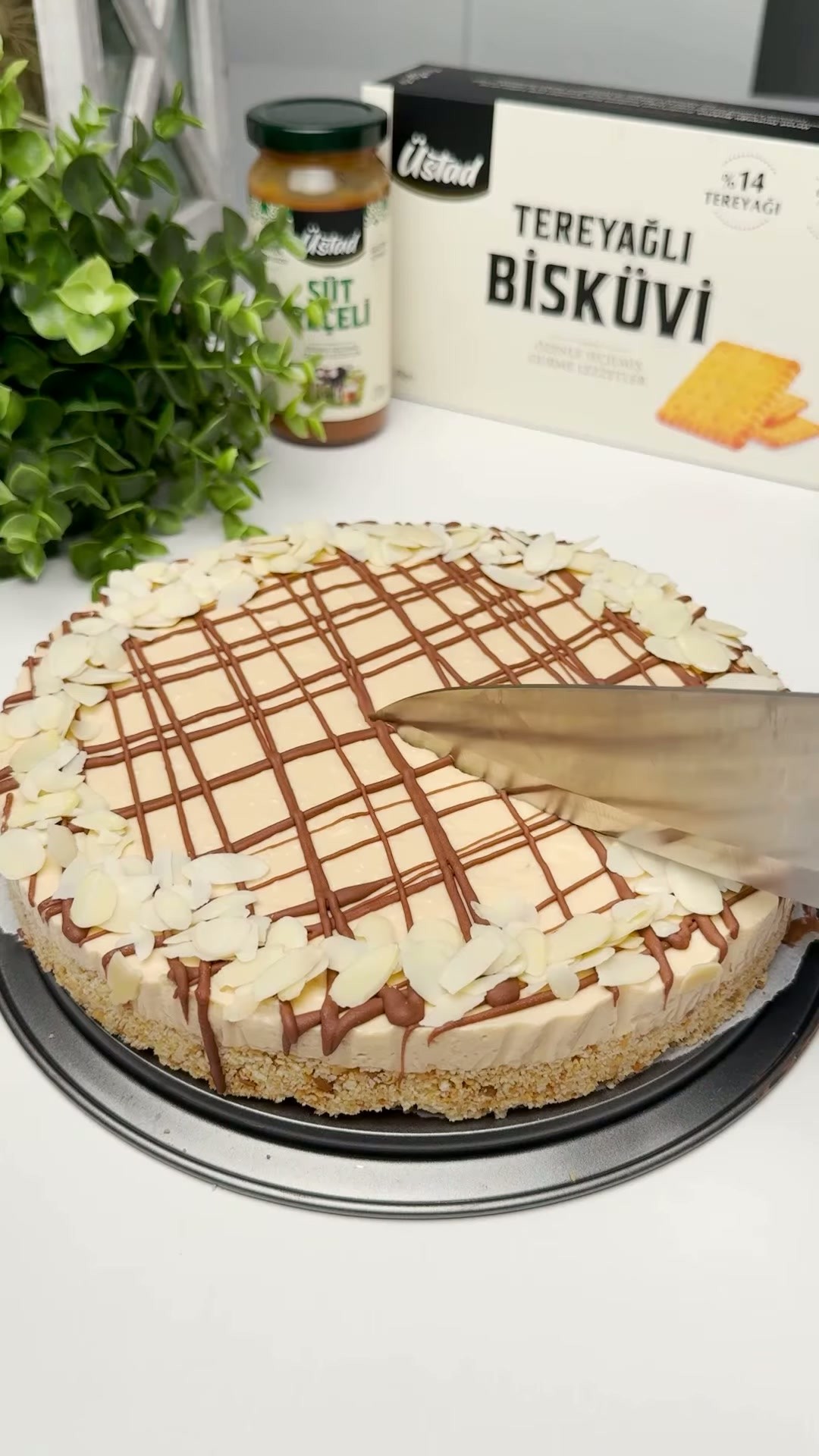 Tabanı İçin: 200 g Üstad Tereyağlı Bisküvi, 100 g Milkten Tereyağı.Orta Katman İçin: 300 g Üstad Süt Reçeli, 200 g Birşah Krema, 150 g Milkten Labne, 1 su bardağı Diyar Hindistan cevizi, 1 paket Dorbi Şekerli Vanilin.Üzeri İçin: File badem, Çikolata.Hazırlanışı