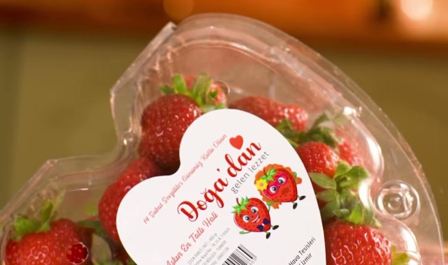 Görselde yer alan metinde ise "14 Şubat Sevgililer Günümüz Kutlu Olsun", "Doğa'dan gelen lezzet", "Aşkın En Tatlı Hali" gibi sloganlar kullanılarak ürün tanıtımı yapıldı. Ayrıca, ürünün menşe bölgesi Türkiye olarak belirtildi ve ürün kodu ile kayıt numarası gibi detaylar paylaşıldı.