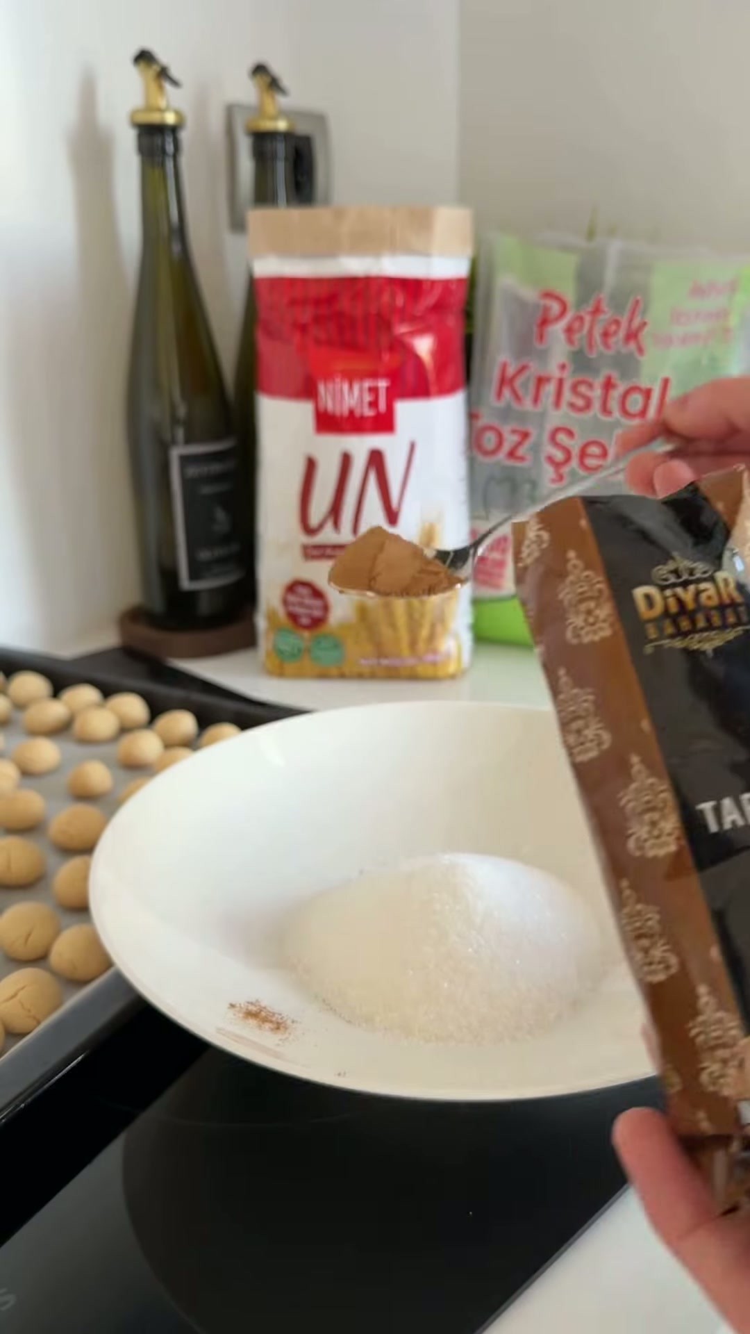 - Bulamaç: Piştikten sonra bulamak için Yarım su bardağı Petek Toz Şeker ve 1–1.5 tatlı kaşığı Diyar Tarçın kullanılacak.