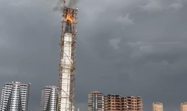 ANKARA'da şiddetli rüzgarla birlikte etkili olan sağanak nedeniyle cadde ve sokaklarda su birikintileri oluştu. Yapımı devam eden caminin minaresine düşen yıldırım sonrası yangın çıktı.