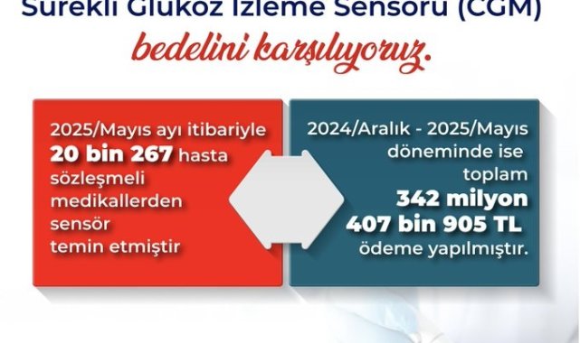 ÇALIŞMA ve Sosyal Güvenlik Bakanı Vedat Işıkhan, "18 yaş altındaki Tip 1 diyabet hastaları için geri ödeme kapsamına aldığımız sürekli glukoz izlem cihazlarından bugüne kadar 20 bin 267 evladımız yararlandı" dedi.Bakan Vedat Işıkhan, sosyal medya hesabından yaptığı açıklamada, 2-18 yaş aralığında olan Tip 1 diyabet hastalarının kullandığı sürekli glukoz izleme sensörü (CGM) bedelini karşıladıklarını duyurdu. Bakan Işıkhan, "18 yaş altındaki Tip 1 diyabet hastaları için geri ödeme kapsamına aldığımız sürekli glukoz izlem cihazlarından bugüne kadar 20 bin 267 evladımız yararlandı. Geçtiğimiz senenin aralık ayından bugüne kadar toplam 343 milyon TL'ye yakın bedeli Sosyal Güvenlik Kurumu tarafından karşıladık. Vatandaşlarımızı destekleyici, hayatlarını kolaylaştıracak uygulamaları gerçekleştirmeye devam edeceğiz" ifadelerini kullandı.