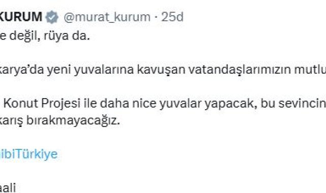 Bakan Kurum'dan sosyal konut paylaşımı