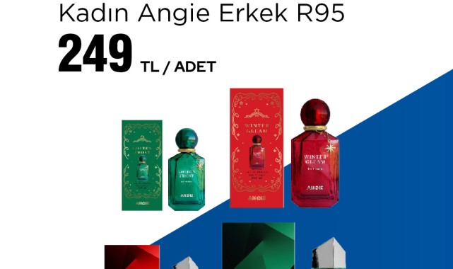 Erkekler için sunulan çeşitler arasında 100 ml'lik GOLDEN FROST ANGIE WINTER GLAM serisi ve R95 FIRE ile FOREST erkek parfümleri bulunuyor. Bu ürünlerin fiyatı 295 TL olarak belirtilmiştir.
