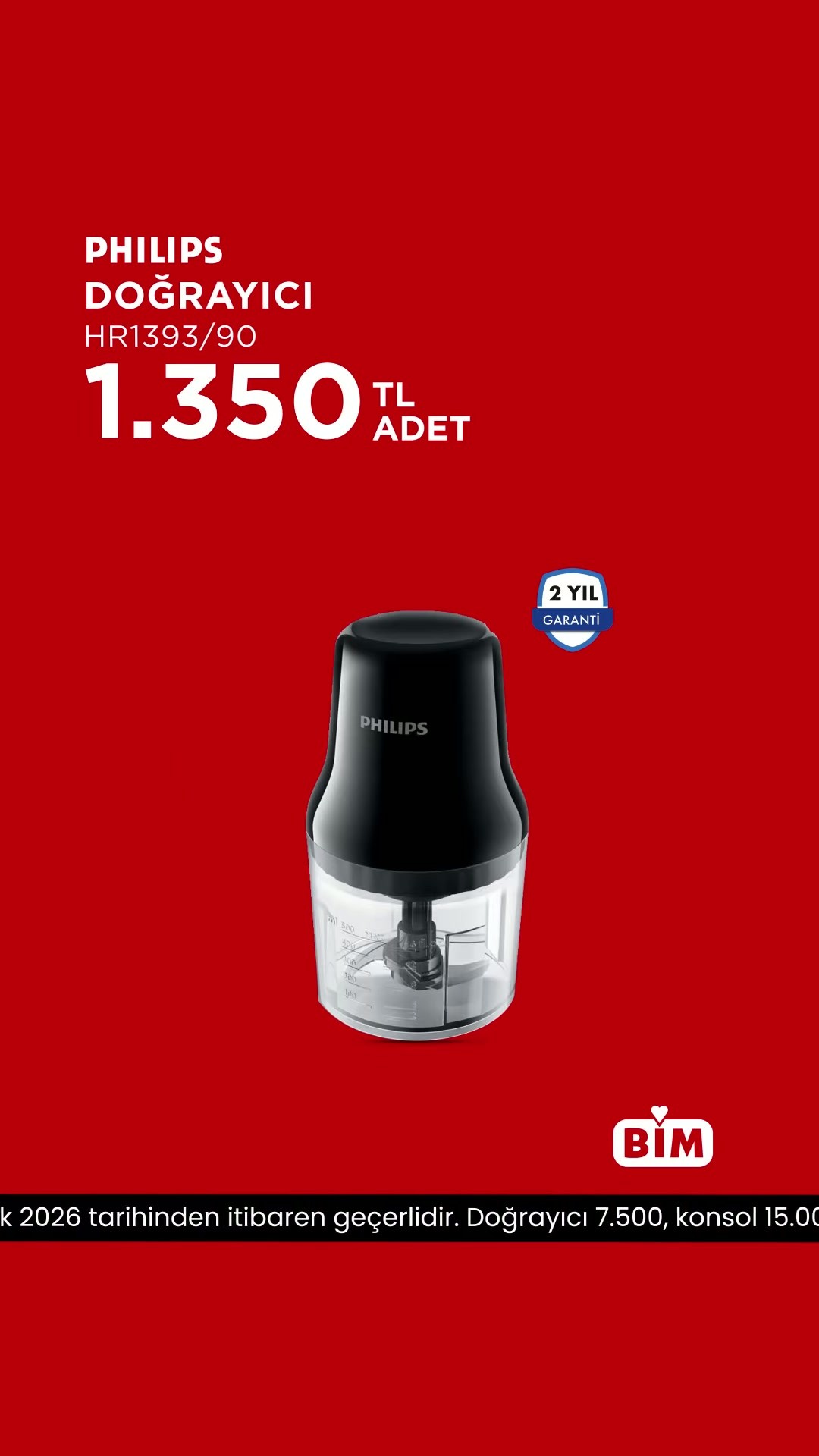 BİM tarafından yapılan açıklamaya göre, Philips Doğrayıcı hafta sonunda özel bir fiyatla raflardaki yerini alacak. Ürünün Cuma günkü satış fiyatı 1.350 TL olarak belirlendi.