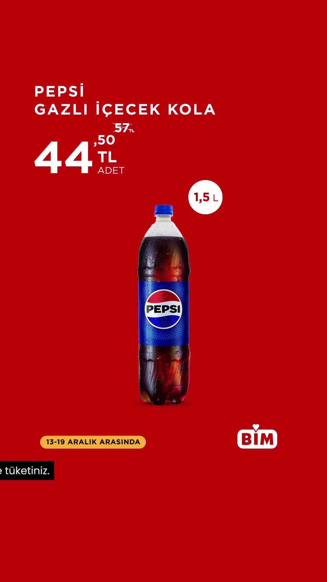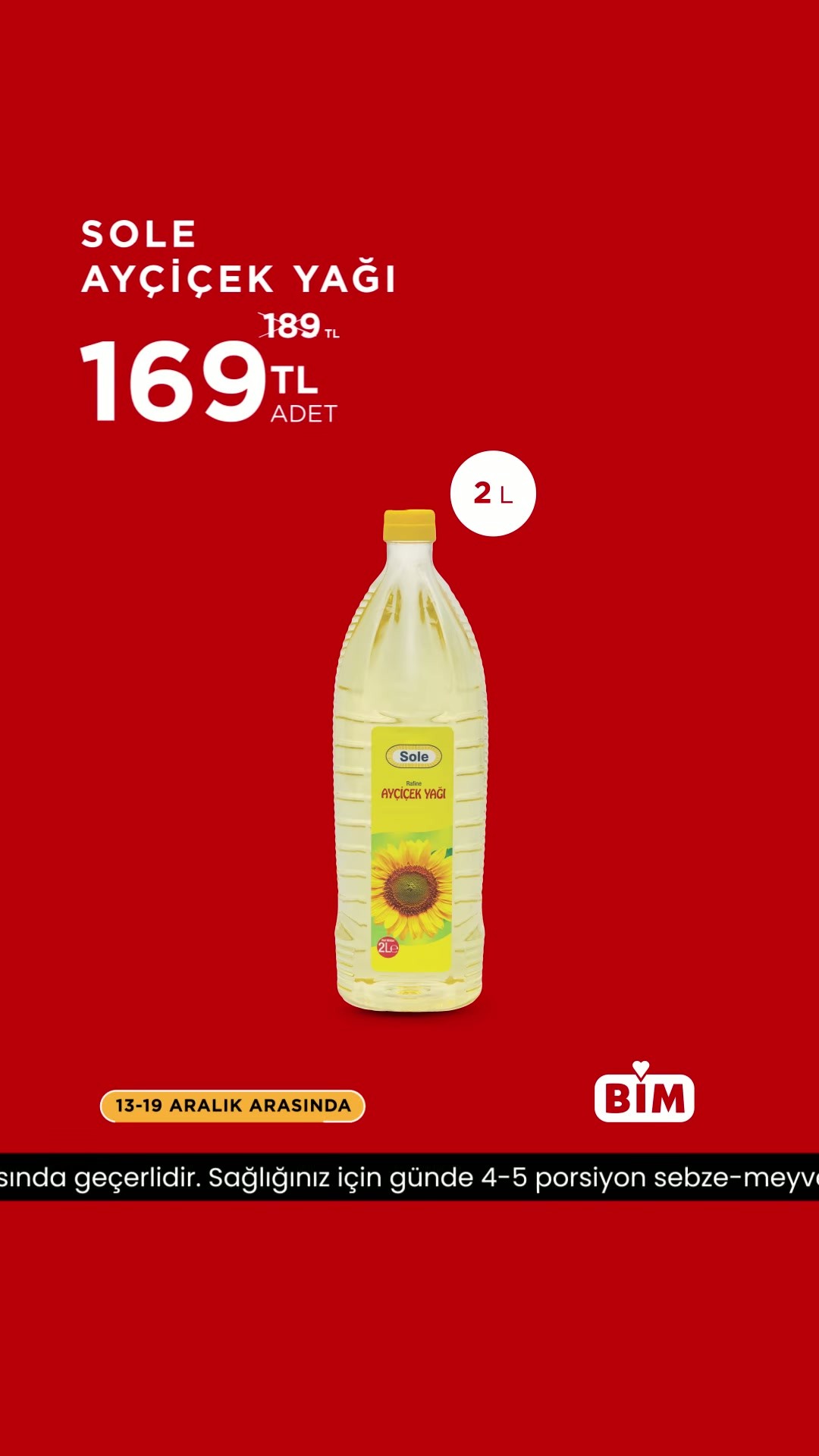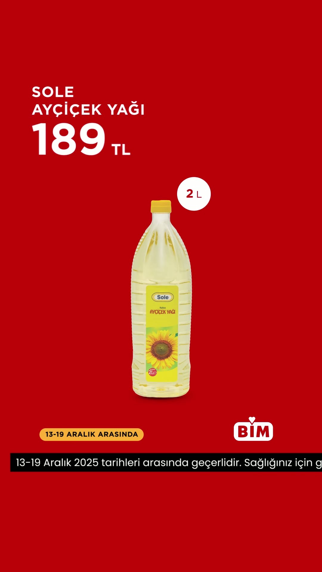 Türkiye genelindeki mağazalarıyla hizmet veren ulusal perakende zinciri BİM, 13-19 Aralık tarihleri arasındaki geçerli olacak güncel indirimli ürünlerini paylaştı.BİM tarafından yapılan açıklamaya göre, tüketicilerin mutfak temel ihtiyaçlarından biri olan Sole Ayçiçek Yağı, bu hafta 169 TL fiyat etiketiyle raflardaki yerini alacak.Ayrıca, gazlı içecek kategorisinde ise popüler marka Pepsi Gazlı İçecek Kola, 44,50 TL fiyatıyla satışa sunulacak.Bu indirimli fiyatlar, BİM mağazalarında 13 Aralık'ta başlayıp 19 Aralık tarihine kadar geçerli olacak.Editör: Haber MerkeziKaynak: Sosyal Medya