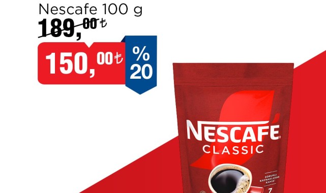 Market zinciri BİM, 24 Ocak ile 30 Ocak tarihleri arasında geçerli olacak yeni indirimli ürünlerini duyurdu.Kampanya dahilinde öne çıkan ürünlerden biri de Nescafe 100 g Çözünebilir Kahve Klasik oldu. %100 çözünebilir kahve olduğu belirtilen ve 7 yoğunluk seviyesine sahip olan ürün, indirimli fiyatlarla raflardaki yerini alıyor.BİM, müşterilerini bu ve diğer birçok çeşit ürünü incelemek üzere bim.com.tr adresini ziyaret etmeye davet etti. İndirimli fiyatların 24-30 Ocak tarihleri arasında geçerli olacağı belirtildi.Editör: Haber MerkeziKaynak: Sosyal Medya