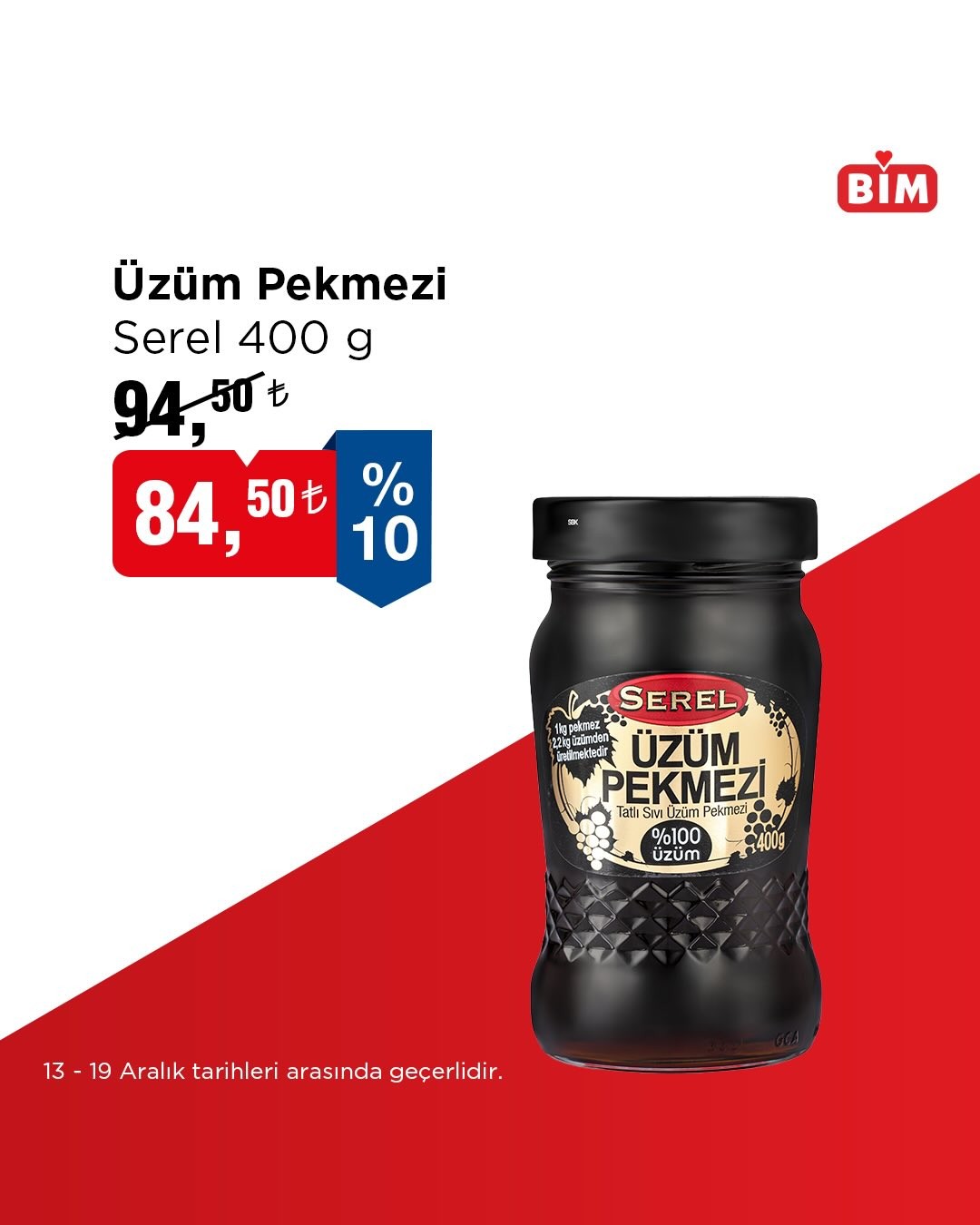 BİM, 13-19 Aralık tarihleri arasında geçerli olacak yeni indirimlerini duyurdu. Bu hafta öne çıkan fırsatlar arasında Serel marka 600 gram tahin, %10 indirimle 90,00 TL'den satışa sunuluyor. Müşteriler, tüm ürünler için online kanalları ziyaret edebilir.