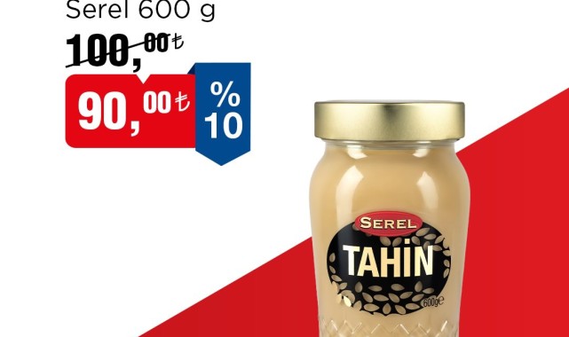 Bu haftanın öne çıkan ürünlerinden biri de tahin oldu. BİM, Serel markalı 600 gram tahini indirimli fiyatla raflara çıkarıyor. İndirimli fiyat listesine göre, Serel 600 g tahin, belirtilen tarihler arasında 100,00 TL yerine 90,00 TL etiketiyle satışa sunulacak. Bu, %10'luk bir indirime denk geliyor.