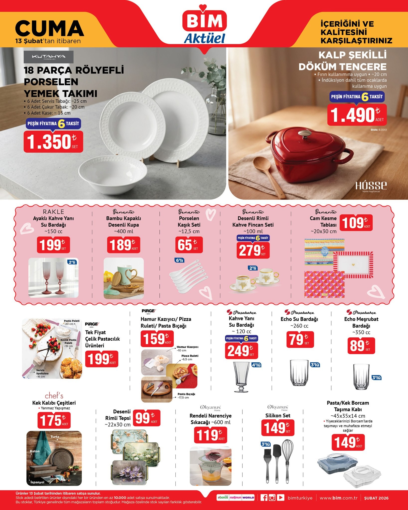 BİM, 13 Şubat Cuma gününden itibaren geçerli olacak yeni aktüel ürünlerini duyurdu. Mağazalarda teknolojik aletlerden ev eşyalarına kadar geniş bir yelpazede ürünler tüketicilerle buluşacak.Kampanya kapsamında TCL markasına ait 65 inç Ultra HD Google TV ve 43 inç Full HD QLED Android TV gibi televizyonlar dikkat çekiyor. Ayrıca Samsung A16 model cep telefonu da aktüel ürünler arasında yer alıyor.