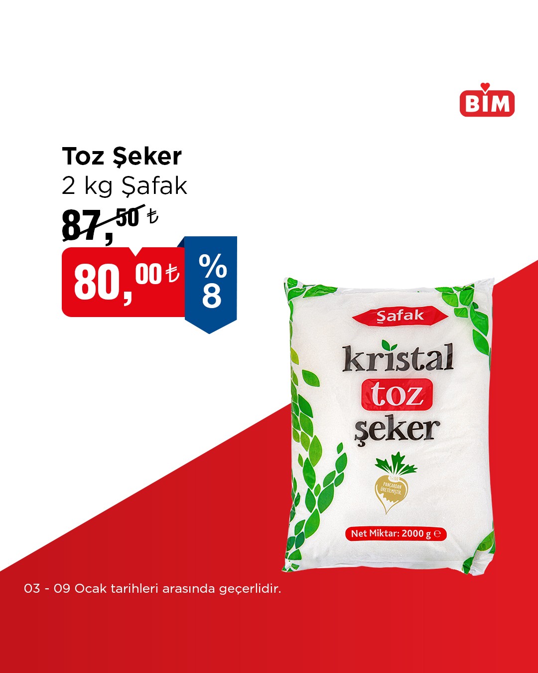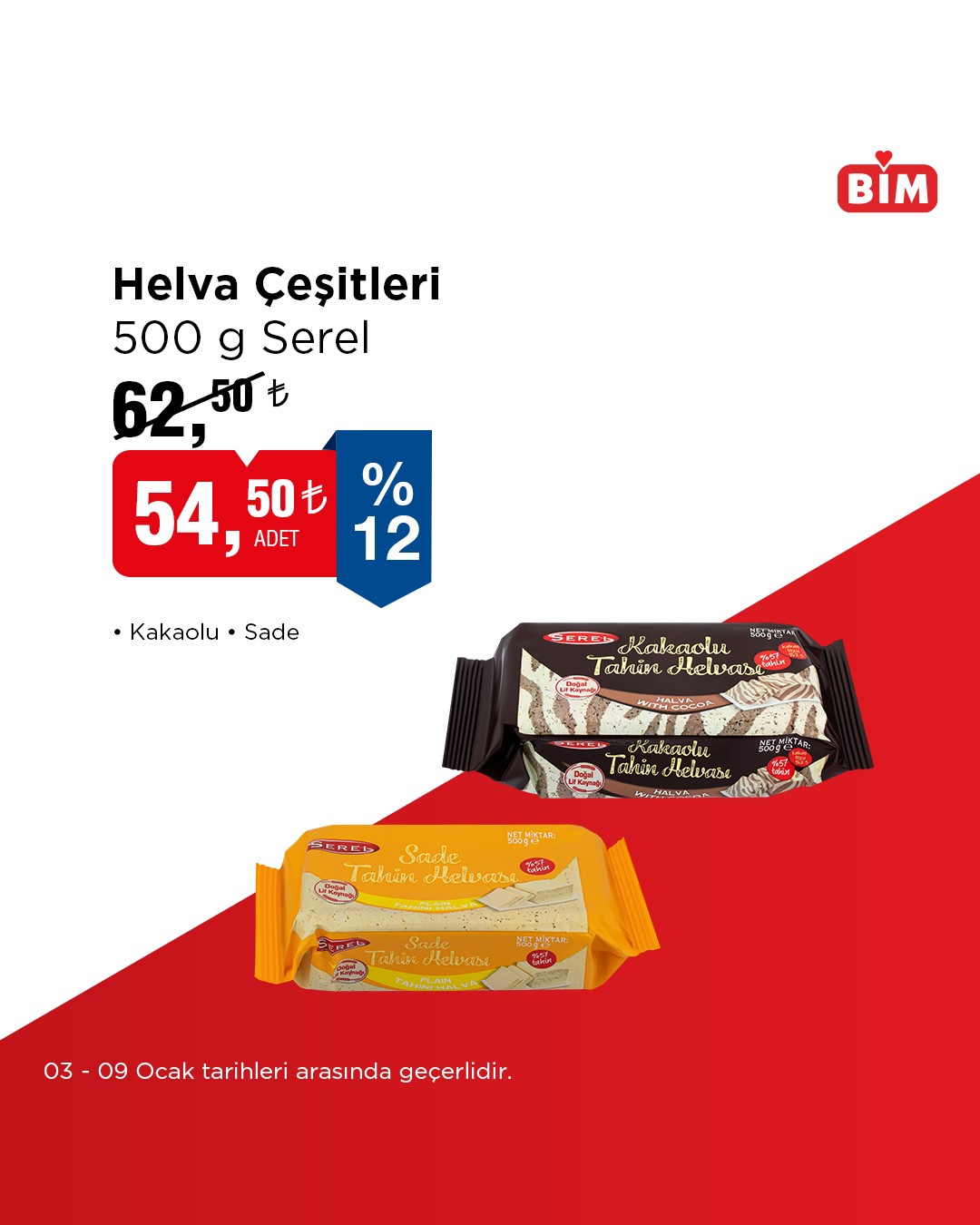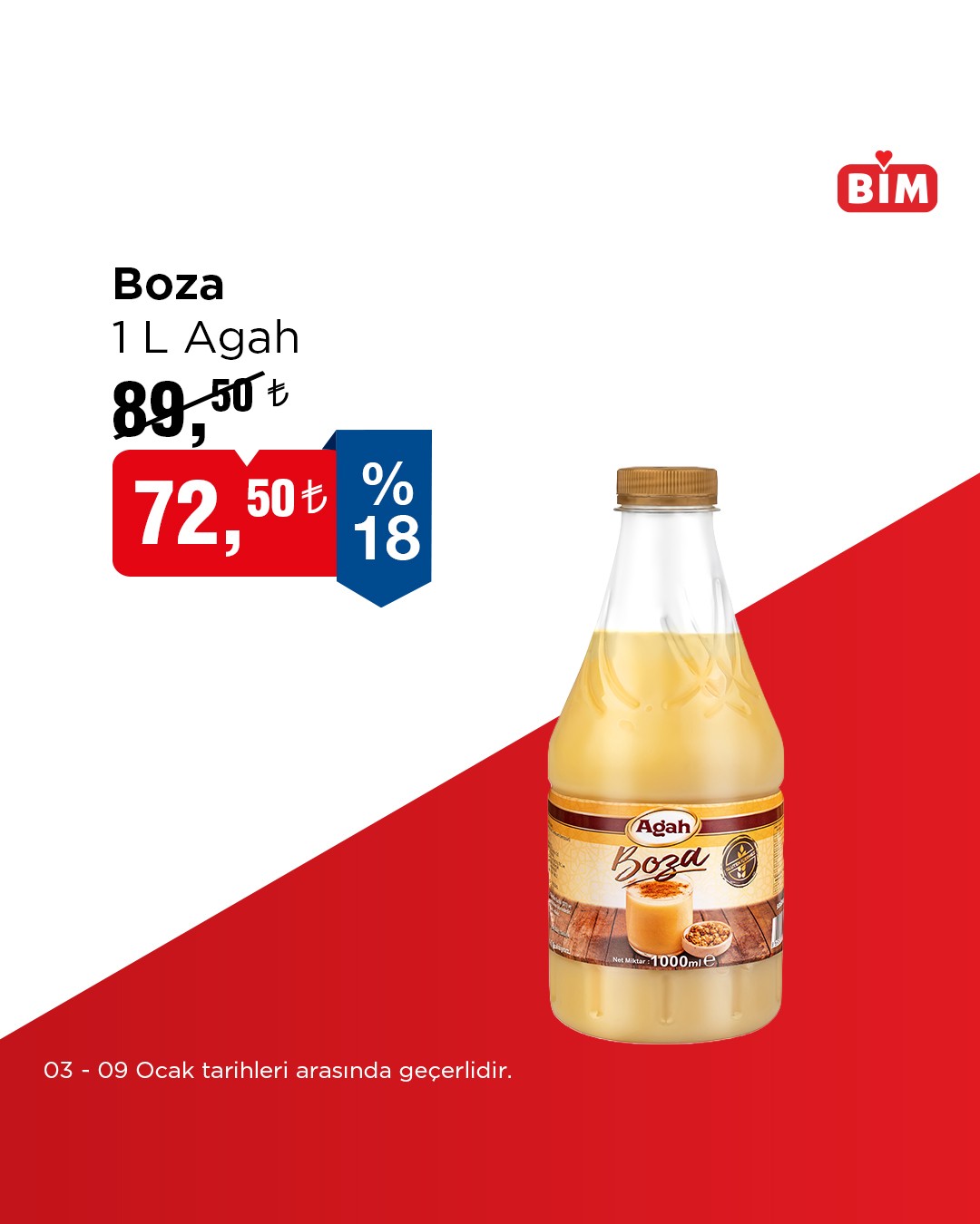 BİM tarafından yapılan açıklamaya göre, belirlenen seçili ürünlerde geçerli olacak indirimli satışlar 03 Ocak ile 09 Ocak tarihleri arasında tüm mağazalarda geçerli olacak.