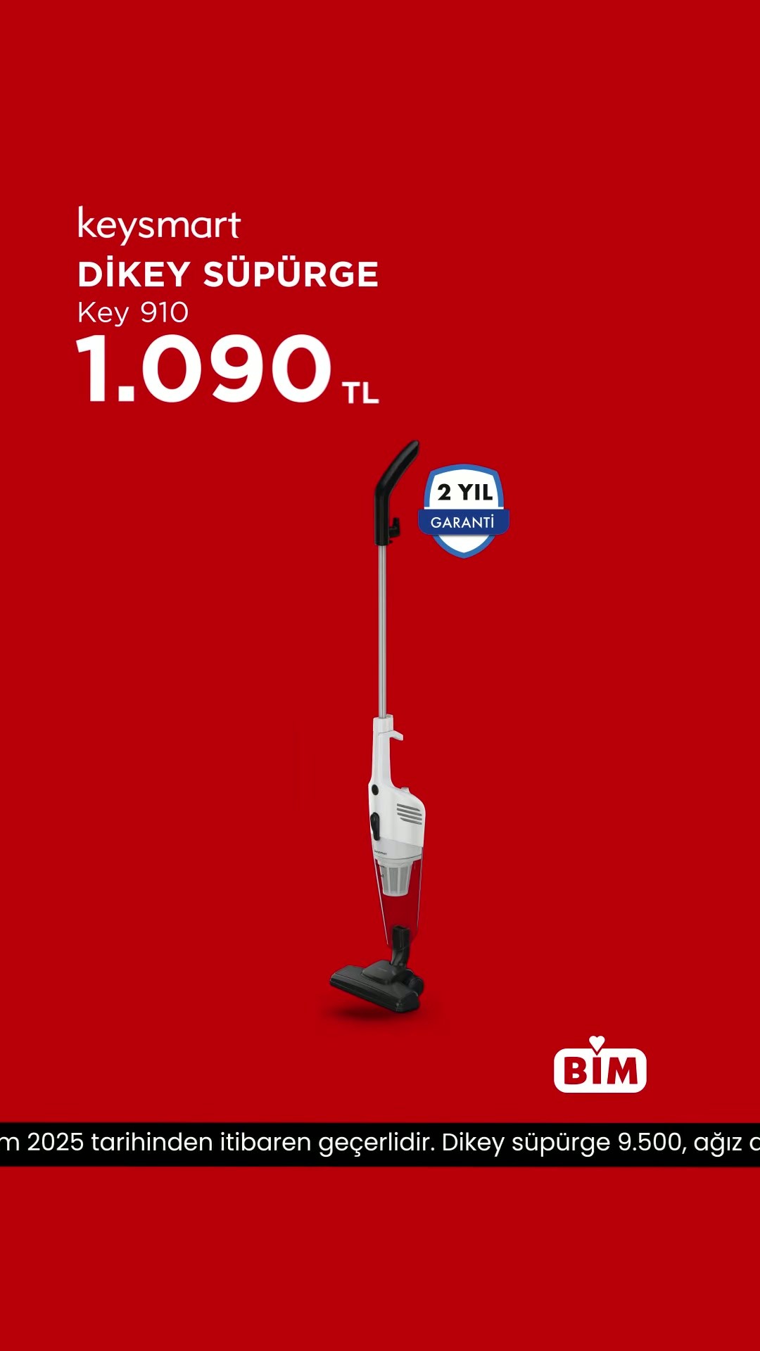 BİM'in aktüel ürünler kataloğuna göre, bu Cuma günü Keysmart Dikey Süpürge 1.090 TL'den satışa sunulacak. Ayrıca, kişisel bakımına özen gösterenler için Polosmart Ağız Duşu da 549 TL'lik fiyatıyla raflarda yerini alacak.
