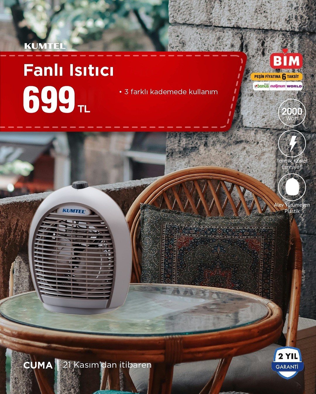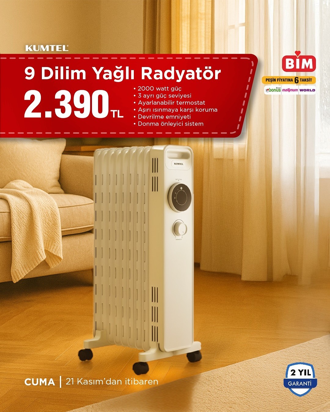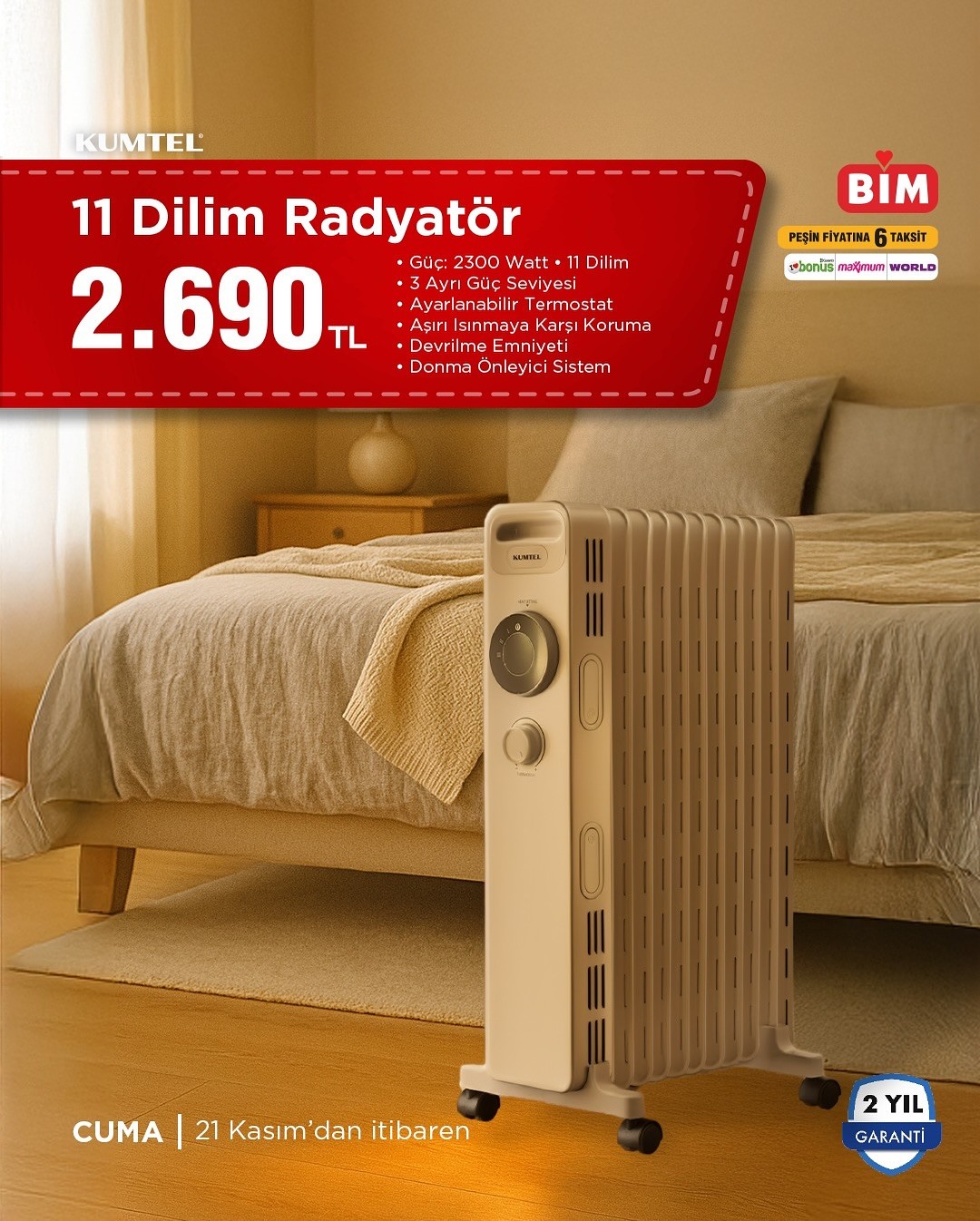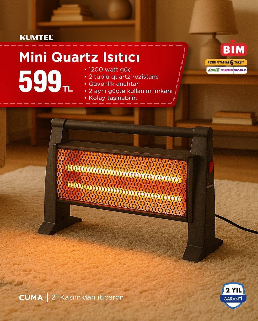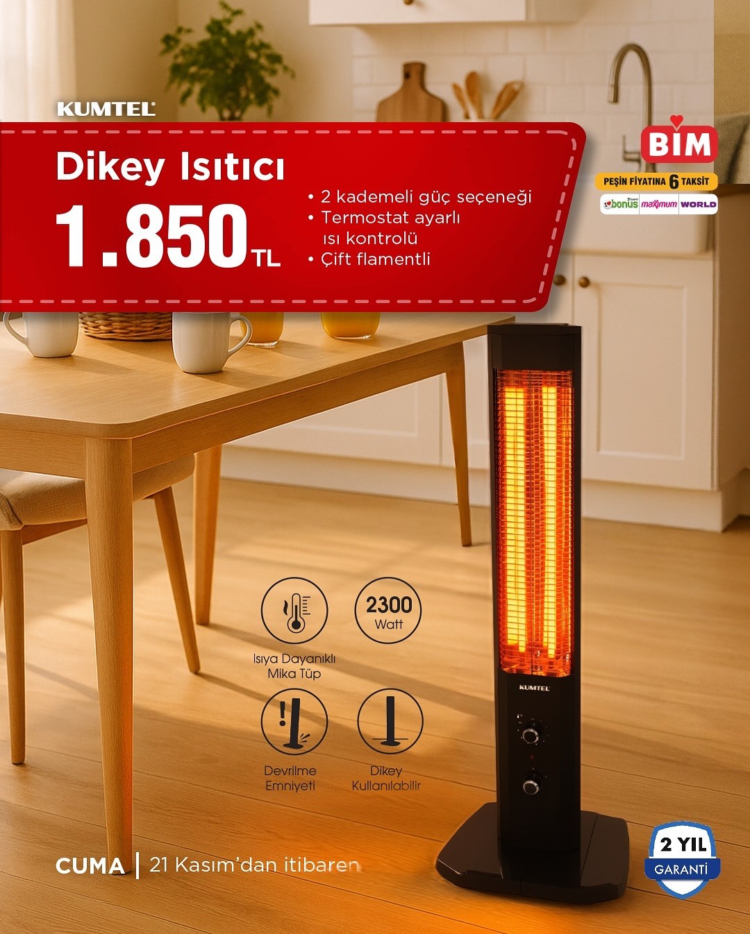 BİM marketleri, 21 Kasım'dan itibaren Kumtel marka ısıtıcıları satışa sunuyor. Kampanya, tüketicilere kış ayları için uygun fiyatlı ısınma seçenekleri sunmayı amaçlıyor. Detaylı bilgi için bim.com.tr ziyaret edilebilir.