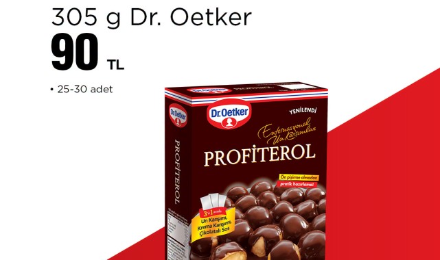 BİM, 21 Nisan tarihinden itibaren geçerli olacak yeni bir kampanyayla müşterilerine avantajlı ürünler sunmaya hazırlanıyor. Bu hafta mağazalarda yerini alacak ürünler arasında, pratik hazırlanışı ve lezzetiyle öne çıkan Dr. Oetker Profiterol bulunuyor.Kampanya kapsamında Dr. Oetker Profiterol, 305 gramlık paketiyle 90 TL'den satışa sunulacak. Ürün, 25-30 adet profiterol hazırlamaya imkan tanıyan içeriğiyle dikkat çekiyor. Paket içerisinde un karışımı, krema karışımı ve çikolatalı sos olmak üzere 3'ü 1 arada pratik bir çözüm sunuluyor. Ürünün ön pişirme gerektirmemesi, evde kolayca tatlı yapma imkanı sağlıyor.