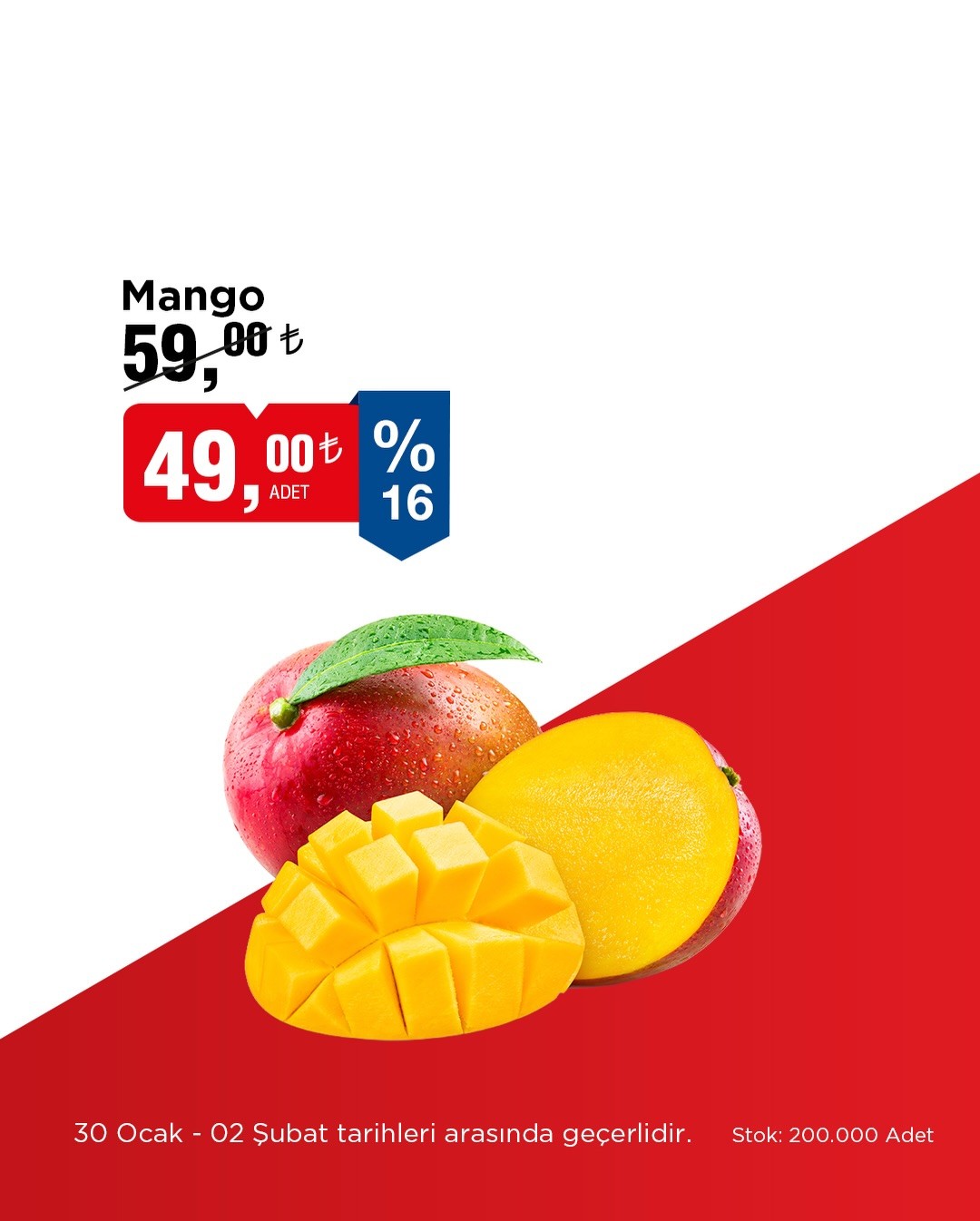 Market zinciri BİM, 30 Ocak ile 02 Şubat tarihleri arasında geçerli olacak seçili meyve ve sebze indirimlerini duyurdu. Kampanya kapsamında ananas gibi ürünlerde cazip fiyatlar sunulacak.Özellikle ananas, belirtilen tarihler arasında 99,00 TL'den satışa sunulacak. Bu ürün için stokların 150.000 adet olduğu bilgisi paylaşıldı. Kampanyanın detayları ve daha fazla ürün çeşidi için BİM'in resmi internet sitesi bim.com.tr ziyaret edilebilir.Editör: Haber MerkeziKaynak: Sosyal Medya