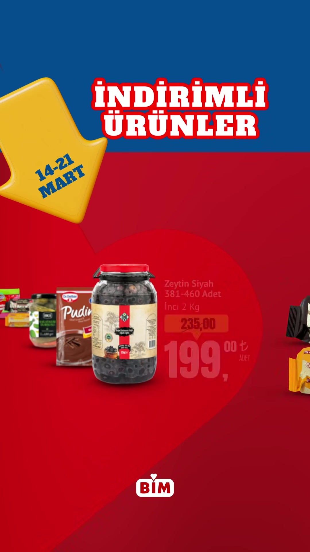BİM, 14-21 Mart tarihleri arasında geçerli olacak seçili ürünlerdeki indirim kampanyasını duyurdu. Kampanya kapsamında özellikle şeker ürünlerinde cazip fiyatlar sunulacak.