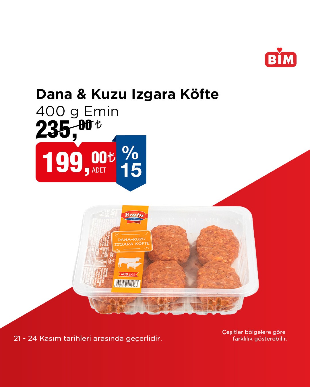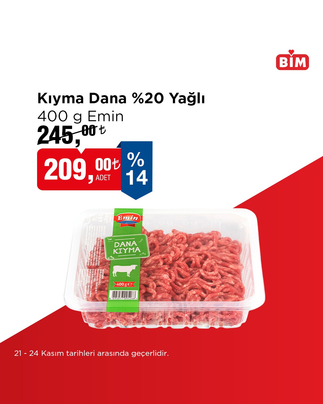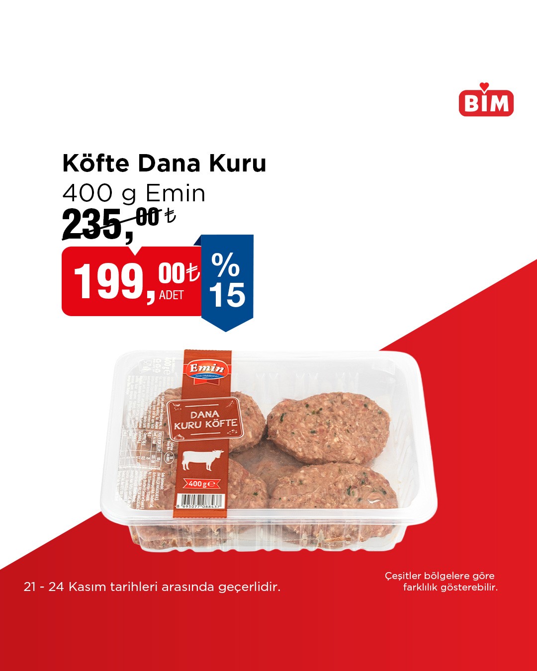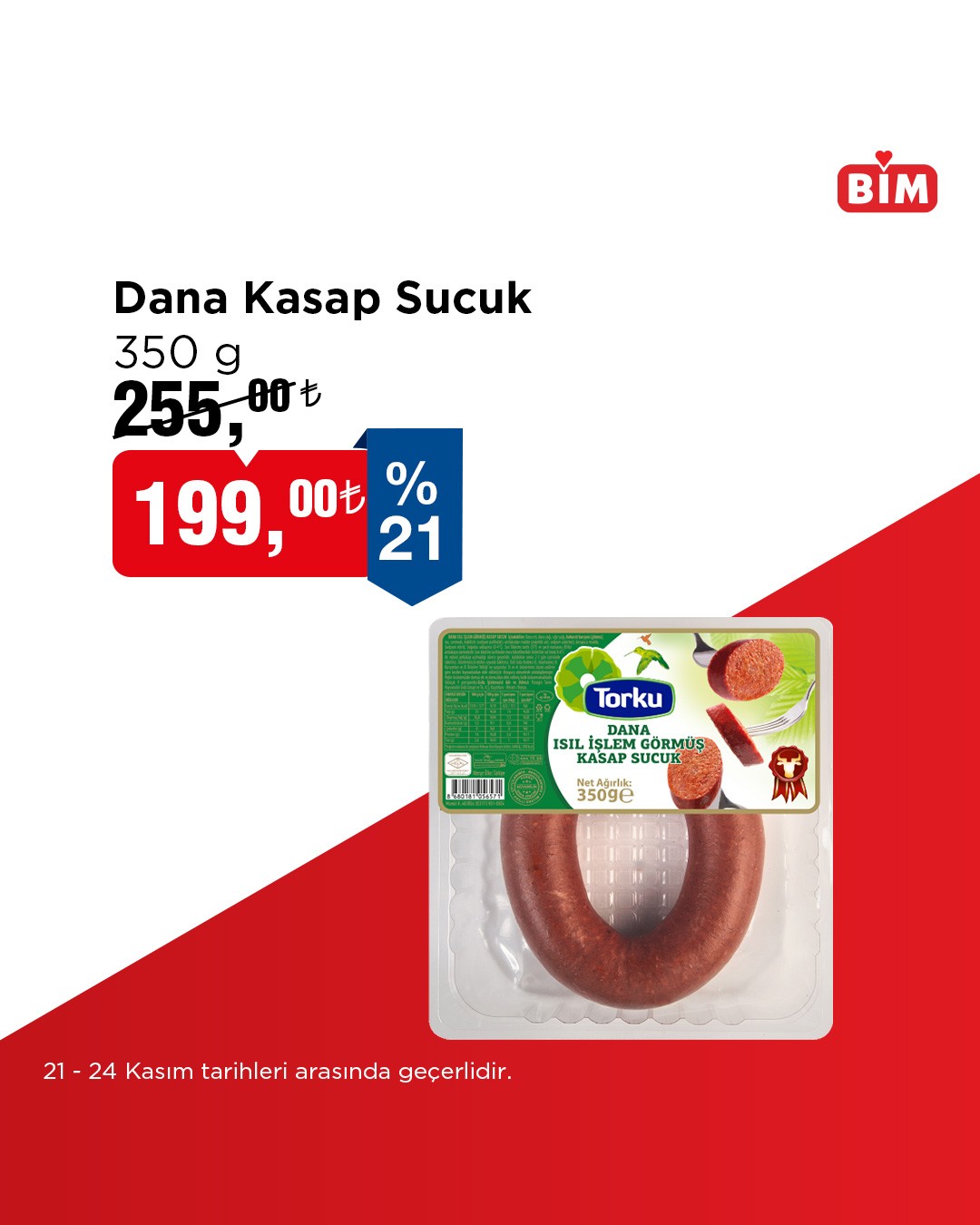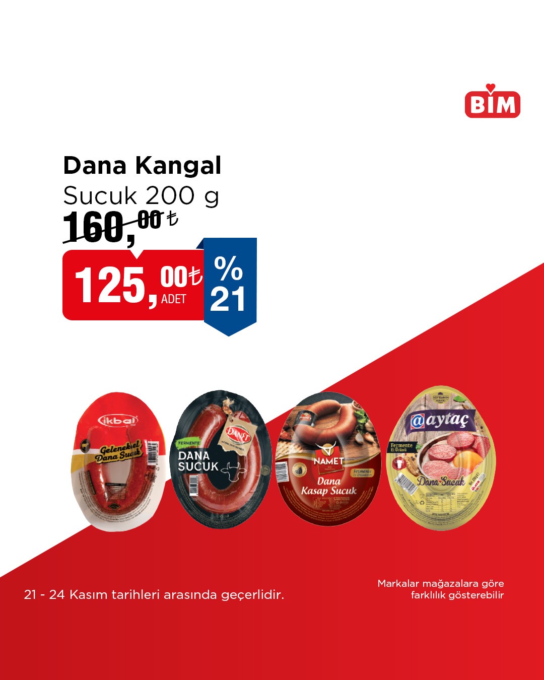 BİM Instagram Hesabı tarafından yapılan duyuruya göre, seçili ürünler 21-24 Kasım tarihleri arasında mağazalarda yerini alacak. Bu kampanya kapsamında özellikle Dana Kasap Sucuk dikkat çekiyor.