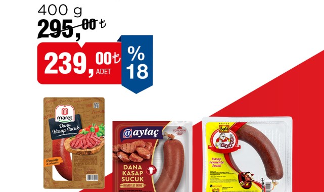 Mare markası altında sunulan 400 gramlık Dana Kasap Sucuk, normalde 295,00 TL olan fiyatı yerine 239,00 TL'den satışa sunulacak. Bu, %18'lik bir indirime denk geliyor. Kampanya süresince Aytaç markasıyla sofralara gelecek olan bu fermente et ürünü, fırsat günleri boyunca BİM raflarında bulunacak. Marka farklılıklarının mağazalara göre değişiklik gösterebileceği de belirtildi.
