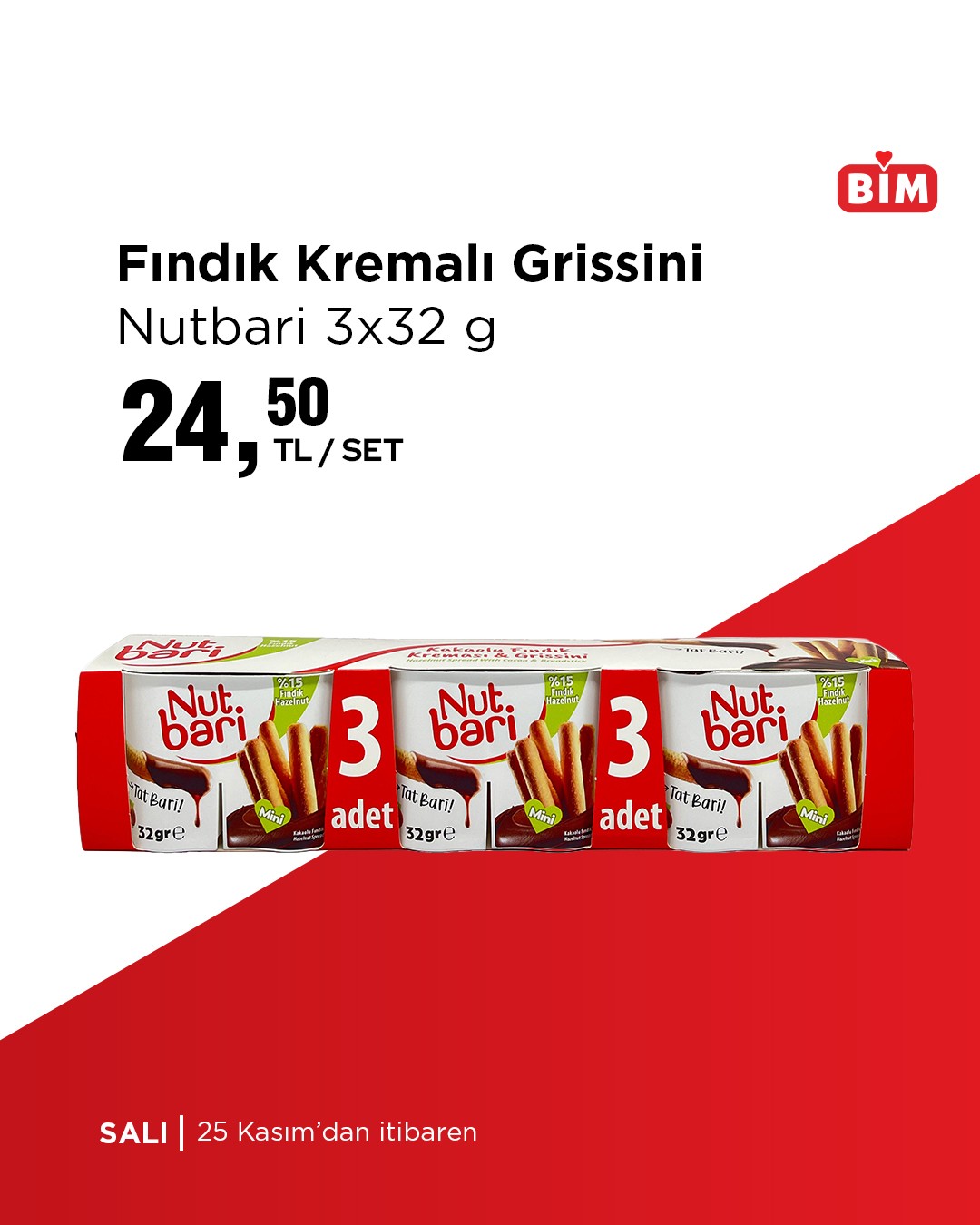 BİM Instagram Hesabı, yaklaşan salı gününe özel yeni ürünlerin mağazalarda yer alacağını duyurdu. Paylaşılan bilgilere göre, 25 Kasım Salı gününden itibaren müşterilere sunulacak ürünler arasında Züber Nutzılla Kakaolu Fındık Kreması da bulunuyor. Ürün, 315 gramlık ambalajı ile dikkat çekiyor.