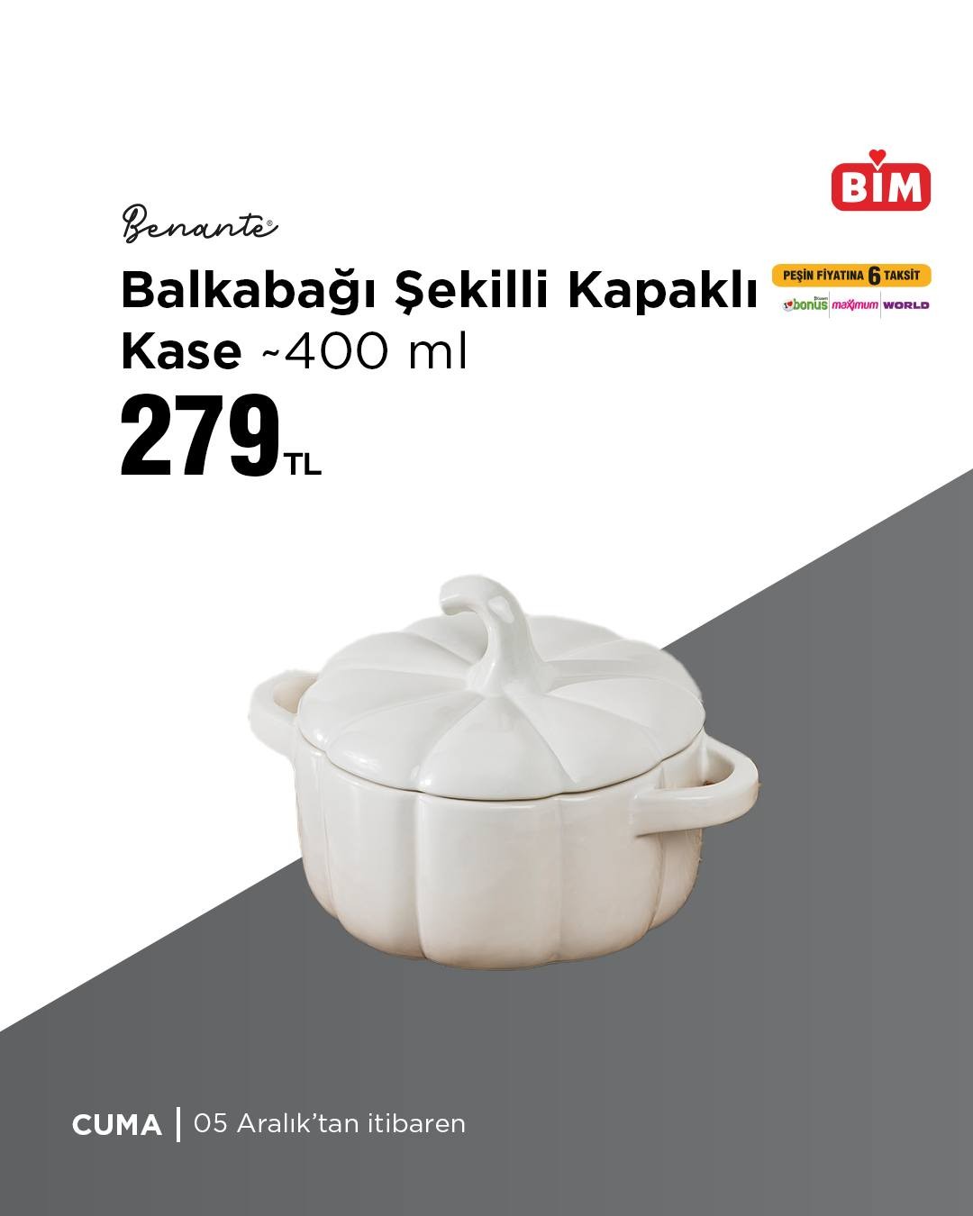 Market zinciri BİM, mağazalarında züccaciye ürünleri reyonunu çeşitli seçeneklerle donattı. Kampanya kapsamında özellikle Derin Tencere dikkat çekiyor. 22 cm çapındaki tencere, yanmaz yapışmaz titanyum özellikleriyle sunuluyor. Peşin fiyatına 6 taksit imkanıyla sunulan ürün, 05 Aralık tarihinden itibaren BİM mağazalarında yerini alacak.Müşteriler, daha fazla ürün ve çeşitlilik için bim.com.tr adresini de ziyaret edebilir.Editör: Haber MerkeziKaynak: Sosyal Medya