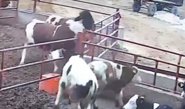 NİĞDE'de 1 tonluk boğa, ahıra giren sahibine saldırdıktan sonra yardıma koşan kardeşini de hafif yaraladı. Olay güvenlik kamerasına yansıdı. Olay, 5 Şubat'ta merkeze bağlı Alay beldesinde meydana geldi. Hayvanlarının bakımı için ahıra giren ismi öğrenilemeyen kişi, 1 tonluk boğanın saldırısına uğradı. Sesleri duyunca kardeşinin yardımına koşan kişi de boğanın hedefi oldu. Öfkeli boğa, saldırdığı 2 kişiyi hafif yaraladı. Bir süre sonra sakinleşen boğa, uzaklaştı. Olay çiftliğin güvenlik kamerasına yansırken, saldırı anında yere düşen çiftlik sahibinin ağzındaki sigarayı atmadığı, içmeye devam ettiği görüldü.