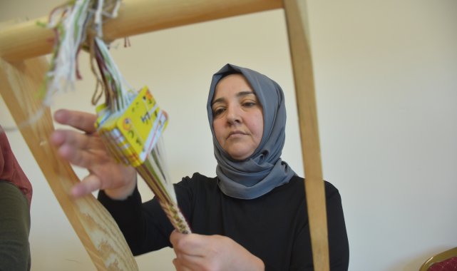 Hüsnü Ümit AVCI-Uğur YİĞİT/SİVAS, (DHA)-SİVAS'ta çeşitli meslek gruplarından kadınlar, yaşadıkları stres ve odaklanma sorununu azaltmak için tarihi milattan önceye kadar uzanan 'çarpana dokuma'yı öğrenmek için kursa gidiyor