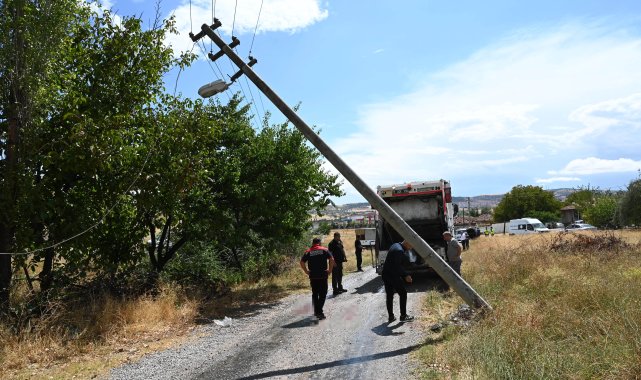 Çöp kamyonu elektrik direğine çarptı: 2 yaralı