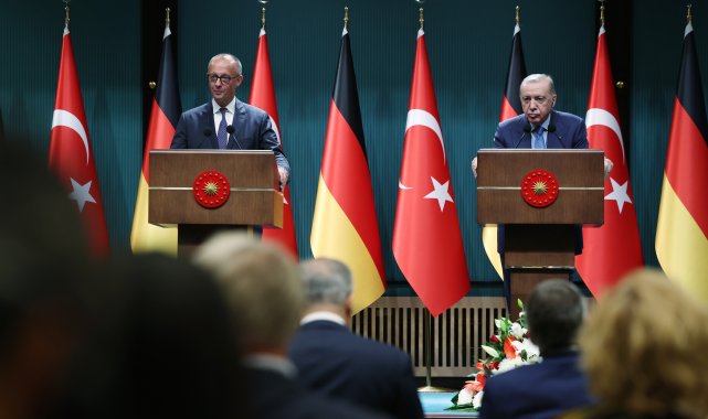 CUMHURBAŞKANI Recep Tayyip Erdoğan, Almanya Başbakanı Friedrich Merz'in, İsrail'in Gazze'ye yönelik saldırılarına ilişkin sözleriyle ilgili, "Bir defa bu süreç içerisinde ne yazık ki 60 bini aşkın çocuk, kadın, yaşlı burada öldürülmüştür. Hamas'ın elinde bombalar yok. Hamas'ın elinde nükleer silah yok. Ama bu silahların hepsi İsrail'in elinde mevcut var ve İsrail bu silahları kullanarak, örneğin dün akşam yine bu bombalarla özellikle Gazze'yi vurmuştur. Bunları Almanya olarak sizler görmüyor musunuz? Almanya olarak bunları takip etmiyor musunuz?" dedi.Cumhurbaşkanı Recep Tayyip Erdoğan, Almanya Başbakanı Friedrich Merz'i resmi törenle karşıladı. Erdoğan ve Merz, ikili ve heyetler arası görüşme sonrası ortak basın toplantısı düzenledi. Erdoğan, Türkiye'ye ilk ziyaretini gerçekleştiren Almanya Başbakanı Merz'i ve heyetini ağırlamaktan memnuniyet duyduğunu kaydederek, "Bugün yaptığımız görüşmelerde iki yakın NATO müttefiki olarak ortak çıkarlarımız zemininde ikili ilişkilerimizi ve uluslararası meseleleri ele aldık. Ayrıca stratejik hedef olarak gördüğümüz Avrupa Birliği'ne tam üyeliğimiz noktasında kendilerinden beklentilerimizi ifade ettik. Türkiye'nin bu konuda sergilediği kararlı iradenin birlik nezdinde hak ettiği karşılığı görmesi durumunda çok kısa sürede ciddi mesafe alabiliriz. Bölgemizde ve dünyada yaşanan gelişmelere bakıldığında Türkiye-Birlik ilişkilerinin stratejik öneminin daha iyi anlaşılacağına inanıyorum" dedi. Cumhurbaşkanı Erdoğan, bugün batı Almanya ile imzalanan iş gücü anlaşmasının 64'üncü yıl dönümü olduğunu anımsatarak, "Bundan tam 64 sene önce ellerinde bavulları, kalplerinde sıla hasretiyle Almanya'ya giden kardeşlerimiz bugün 3,5 milyona varan nüfuslarıyla Almanya'nın kalkınmasına her alanda büyük katkı sundular. Değerli dostumla görüşmemizde Almanya'da yaşayan Türk toplumunun ortak değerimiz ve zenginliğimiz olduğunu bir kez daha teyit ettik. Almanya'daki kardeşlerimizin yıllara sari kazanımlarının korunmasına verdiğimiz önemin altını çizdim. Bu çerçevede son yıllarda Avrupa'da artışı bir türlü engellenemeyen yer yer ırkçılığa varan yabancı düşmanlığı ve İslam karşıtlığıyla mücadeleye atfettiğimiz ehemmiyeti vurguladım. Yurt dışındaki kardeşlerimizin kültürlerini, kimliklerini ve kadim değerlerini muhafaza ederek bulundukları ülkelere entegrasyonunu hep destekledik. Bundan sonra da desteğimiz bakidir" diye konuştu. 'TİCARET HACMİMİZİ 60 MİLYAR DOLARA ÇIKARMAYI HEDEFLİYORUZ'Erdoğan, Türkiye ile Almanya arasındaki ekonomik ve ticari ilişkilerin olumlu seyrini sürdürdüğünü vurgulayarak, "Almanya, Türkiye'nin Avrupa'daki en büyük ticaret ortağı. 50 milyar dolara ulaşan ticaret hacmimizi yakın vadede 60 milyar dolara çıkarmayı hedefliyoruz. Bu minvalde gerek ticaretimizi gerek müşterek yatırımları bir üst seviyeye taşıyacak savunma iş birliği konusunu Sayın Şansölye ile değerlendirdik. Avrupa'da değişen güvenlik koşulları ışığında savunma sanayi ürünlerinin tedarikinde geçmişte yaşanan sıkıntıları geride bırakarak ortak projelere odaklanmamız gerekiyor. Eurofighter uçaklarının temin süreci gibi Almanya'nın son dönemde bu alanda attığı olumlu adımları memnuniyetle karşılıyoruz. Türkiye'nin savunma sanayi alanında yakaladığı ivme dikkate alındığında Almanya ile çok geniş iş birliği imkanlarına sahip olduğumuz görülüyor. Kazan-kazan anlayışı temelinde bu iş birliğini daha da güçlendirebiliriz" ifadelerini kullandı. 'HERKESİN TAŞIN ALTINA ELİNİ KOYMASI GEREKİYOR'Bugünkü görüşmede ayrıca, Türkiye'nin terörle mücadeledeki beklentilerini de paylaştığını kaydeden Erdoğan, "Almanya'nın kamu güvenliği bakımından da ciddi tehdit teşkil eden terör örgütleriyle ortak mücadelenin önemine dikkat çektim. Bölgesel ve küresel meselelerde de fikir alışverişinde bulunduk. Türkiye olarak Gazze'deki soykırımı ilk günden itibaren uluslararası gündeme taşıdık. Ateşkesin sağlanması ve insani yardımların bölgeye ulaştırılması için yoğun çaba gösterdik. Bu mezalimin yeniden yaşanmamasına ve bölgede kalıcı barışın anahtarı olan iki devletli çözüme dair görüşlerimizi kendilerine aktardım. Evvela bölgeye yardımların kesintisiz ulaştırılması gibi yeniden yapılanma sürecinde de herkesin taşın altına elini koyması gerektiğini ifade ettim" dedi. 'İŞ BİRLİĞİ COĞRAFYALARIMIZIN GÜVENLİĞİ İÇİN VAZGEÇİLMEZ' Görüşmede, Suriye'deki gelişmelerin de ele alındığını belirten Erdoğan, "Devrimden bu yana geçen 11 ayda Cumhurbaşkanı Sayın Şara'nın liderliğinde Suriye, kalıcı barış, huzur ve ekonomik kalkınma yolunda ciddi ilerlemeler kaydetti. Yaptırımların kalkmasına paralel olarak bu sürecin daha da hızlanacağı inancındayız. Ülkenin toprak bütünlüğü ve birliğinin muhafazası suretiyle Suriye halkının tüm fertlerinin refah ve esenliği bizim için öncelikli hedeftir. Bu noktada 10 Mart mutabakatının uygulanmasına büyük önem atfediyor, bu yönde verilen mesajları dikkatle takip ediyoruz. Almanya'nın da Suriye konusunda bizimle eş güdüm içinde çalışmaya atfettiği önemin farkındayız. Ukrayna-Rusya Savaşı konusunda da görüş alışverişimiz oldu. Savaşın adil ve kalıcı şekilde çözümü için diplomatik çabaların sürdürülmesini önemli görüyoruz. Güçlü temellere ve çok katmanlı ilişki ağına sahip Türk-Alman iş birliğinin Avrupa'nın ve mücavir coğrafyalarımızın güvenliği için vazgeçilmez olduğunu bugün bir kez daha teyit etmiş olduk. Bu anlayışla Almanya ile yakın iş birliği içinde çalışmayı önümüzdeki dönemde de sürdüreceğiz" ifadelerini kullandı.'BİZİM DE ANKARA KRİTERLERİ