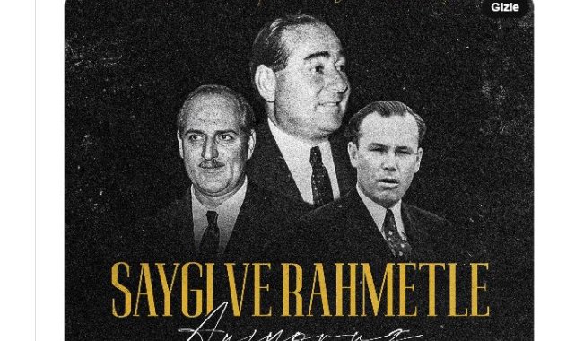 CUMHURBAŞKANI Recep Tayyip Erdoğan, Eski Başbakan Adnan Menderes, Dışişleri Bakanı Fatin Rüştü Zorlu ve Maliye Bakanı Hasan Polatkan'ı idam edilişlerinin 64'üncü yılında andı.Cumhurbaşkanı Erdoğan, NSosyal hesabından paylaştığı mesajda, "Demokrasi, hukuk ve adaletin ayaklar altına alındığı utanç verici 27 Mayıs darbesinin cunta mahkemesi tarafından haksız şekilde idama mahkum edilen Başbakan Adnan Menderes, Dışişleri Bakanı Fatin Rüştü Zorlu ve Maliye Bakanı Hasan Polatkan'ı, katledilişlerinin 64'üncü yılında rahmetle, hürmetle yad ediyorum" ifadelerini kullandı.
