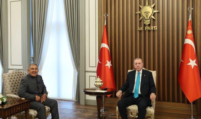 CUMHURBAŞKANI Recep Tayyip Erdoğan, Tataristan Cumhurbaşkanı Rüstem Minnihanov ile bir araya geldi.Cumhurbaşkanı Recep Tayyip Erdoğan, Tataristan Cumhurbaşkanı Rüstem Minnihanov ile AK Parti Genel Merkezi'nde bir araya geldi. Basına kapalı gerçekleşen görüşmeye ilişkin fotoğraf paylaşıldı.