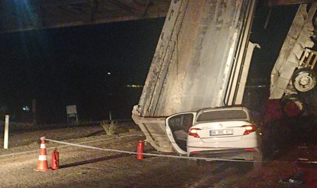 Damperi açılan kamyona otomobil çarptı; 1 ölü, 3 yaralı