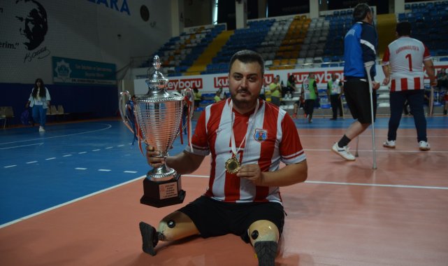KAHRAMANMARAŞ'ta 6 Şubat 2023'te meydana gelen depremde eşi ve 2 çocuğu ile bacaklarını kaybeden Halil Yeşilli (35), voleybolla hayata tutundu. Erkekler Oturarak Voleybol 1. Ligi'nde mücadele eden Kahramanmaraş Büyükşehir Belediyespor'da oynayan Yeşilli, "Hayata voleybolla kaldığımız yerden devam etmeye çalışıyoruz" dedi.Kahramanmaraş'ta Ebrar Sitesi'nde oturan, bir bankada güvenlik görevlisi olan Halil Yeşilli, 6 Şubat 2023'te meydana gelen depremde eşi Zeynep ile kızları 5 yaşındaki Esila ve 3,5 yaşındaki Zeynep Yeşilli'yi kaybetti. Enkaz altından güçlükle kurtulan ve 2 bacağını kaybeden Halil Yeşilli, 2 ay önce Erkekler Oturarak Voleybol 1. Ligi'nde mücadele eden Kahramanmaraş Büyükşehir Belediyespor'da spora başladı. Yeşilli'nin forma giydiği Kahramanmaraş Büyükşehir Belediyespor, Türkiye Voleybol Federasyonu tarafından Aksaray'da düzenlenen turnuvada şampiyon olup, Süper Lig'e yükseldi. 'YENİ OLMAMIZA RAĞMEN ŞAMPİYON OLDUK'Takımında 5 maç oynayıp, şampiyonluk heyecanı yaşayan Halil Yeşilli, "2 ay önce voleybola başladım. Yeni kurulan bir takımız. Yeni olmamızı rağmen şampiyon olduk. Ne mutlu Kahramanmaraş Büyükşehir Belediyesi adına. Biz de mutlu ve gururluyuz. 6 Şubat depreminde televizyonlara haber olan Ebrar Sitelerinde bacaklarım ile eşim ve 2 çocuğumu orada kaybettim. Allah kimseye böyle bir durum yaşatmasın. Bacaklarımla ilgili tedavim sürüyor. Bu şekilde hayatıma kaldığım yerden devam ediyorum. Ben ikinci gün, akşam çıktım" dedi. 'KUPAYI, ŞEHRİMİZE DEPREM ŞEHİTLERİ ADINA GÖTÜRECEĞİZ'Hayata voleybolla tutunmaya çalıştığını belirten Yeşilli, "Gazi Mehmet Orçan voleybola davet etti. Onun sayesinde hayata voleybolla kaldığımız yerden devam etmeye çalışıyoruz. Bu kupayı ise önce Kahramanmaraş adına ve ilk önce deprem şehitlerine armağan ediyorum. Şehrimize, deprem şehitleri adına götüreceğiz" diye konuştu.