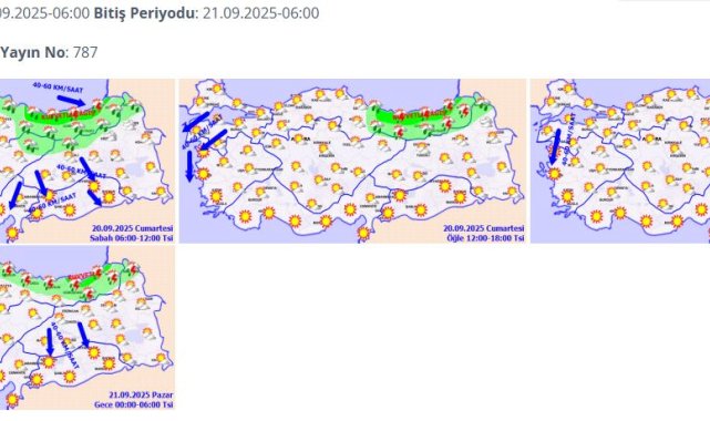METEOROLOJİ Genel Müdürlüğü, bugün hava sıcaklarının yurt genelinde mevsim normallerinin altında seyredeceğini belirterek, Doğu Karadeniz kıyıları ve Ordu çevreleri için kuvvetli yağış uyarısında bulundu. Meteoroloji Genel Müdürlüğü tarafından yapılan tahminlere göre; yurdun kuzey, iç ve doğu kesimlerinin parçalı, yer yer çok bulutlu, Doğu Karadeniz ile Sivas, Sinop, Samsun, Ordu, Tokat ve Ardahan çevrelerinin yerel olmak üzere sağanak ve gök gürültülü sağanak yağışlı, diğer yerlerin az bulutlu ve açık geçeceği bekleniyor. Yağışların, Doğu Karadeniz kıyıları ile Ordu çevrelerinde yer yer kuvvetli olması öngörülüyor. Hava sıcaklığının, ülke genelinde mevsim normallerinin altında seyredeceği tahmin ediliyor.BİRÇOK İLDE RÜZGAR UYARISIRüzgarın genellikle kuzey yönlerden hafif, ara sıra orta kuvvette, Marmara'nın güneybatısı, Kuzey Ege kıyıları, Doğu Karadeniz kıyıları, Doğu Anadolu'nun batısı, Güneydoğu Anadolu ile Mersin'in batı ve Kahramanmaraş'ın kuzey kesimlerinde kuzey yönlerden kuvvetli olarak esmesi bekleniyor. Yağışların, Doğu Karadeniz kıyıları ile Ordu çevrelerinde yer yer kuvvetli olması beklendiğinden sel, su baskını, yıldırım, yerel küçük çaplı dolu ve yağış anında kuvvetli rüzgar gibi olumsuzluklara karşı dikkatli ve tedbirli olunması gerekiyor. Rüzgarın da Marmara'nın güneybatısı, Kuzey Ege kıyıları, Doğu Karadeniz kıyıları, Doğu Anadolu'nun batısı, Güneydoğu Anadolu ile Mersin'in batı ve Kahramanmaraş'ın kuzey kesimlerinde kuzey yönlerden kuvvetli olarak esmesi beklendiğinden yaşanabilecek olumsuzluklara karşı dikkatli ve tedbirli olunması gerekiyor.