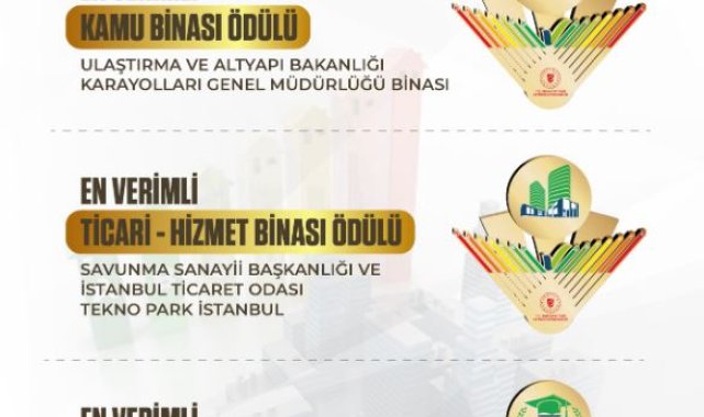 TÜRKİYE'de enerji verimliliği farkındalığının artırılması amacıyla bu yıl 2'ncisi düzenlenen Binalarda Enerji Verimliliği Proje Yarışması'nın (BENVER-2) kazananları; TEKNOPARK İstanbul, Karayolları Genel Müdürlüğü ve Anadolu Üniversitesi Yunus Emre Kampüsü oldu.Enerji ve Tabii Kaynaklar Bakanlığı'ndan yapılan açıklamaya göre; üç ayrı kategoride düzenlenen BENVER-2 Yarışması'nın kazananları 125 kamu, hizmet ve ticari bina arasından seçildi. Jüri, yarışmada yer alan binalarda hangi enerji verimliliği adımlarının atıldığını inceledi. Binaların enerji verimliliğine katkı sağlayan uygulamaları tek tek tespit edildi. Yarışmada yapılan incelemeler sonucunda 3 bina ödüle layık görüldü. 'Ticari-Hizmet Binaları' kategorisinde, Savunma Sanayii Başkanlığı ile İstanbul Ticaret Odası ortaklığında faaliyet gösteren TEKNOPARK İstanbul, 'En Verimli Ticari-Hizmet Binası' ödülünü kazandı. 'Kamu Binaları' kategorisinde ise Ulaştırma ve Altyapı Bakanlığı'na bağlı Karayolları Genel Müdürlüğü'nün binası öne çıktı. LED aydınlatma dönüşümü, ısıtma sistemlerinin optimizasyonu ve soğutma için yapılan uygulamalarla dikkat çeken Karayolları Genel Müdürlüğü, 'En Verimli Kamu Binası' ödülünü alarak birinci oldu. Yarışmada 'Üniversite Binaları' kategorisinde de aydınlatma sistemlerinin iyileştirilmesi, yenilenebilir enerji kaynaklarının kullanılması, ısıtma sisteminin modernizasyonu ve bina otomasyon sisteminin kurulması ile yalıtım gibi konularda enerji verimliliği adımları atan Anadolu Üniversitesi Yunus Emre Kampüsü, 'En Verimli Üniversite Binası' ödülüne layık görüldü.