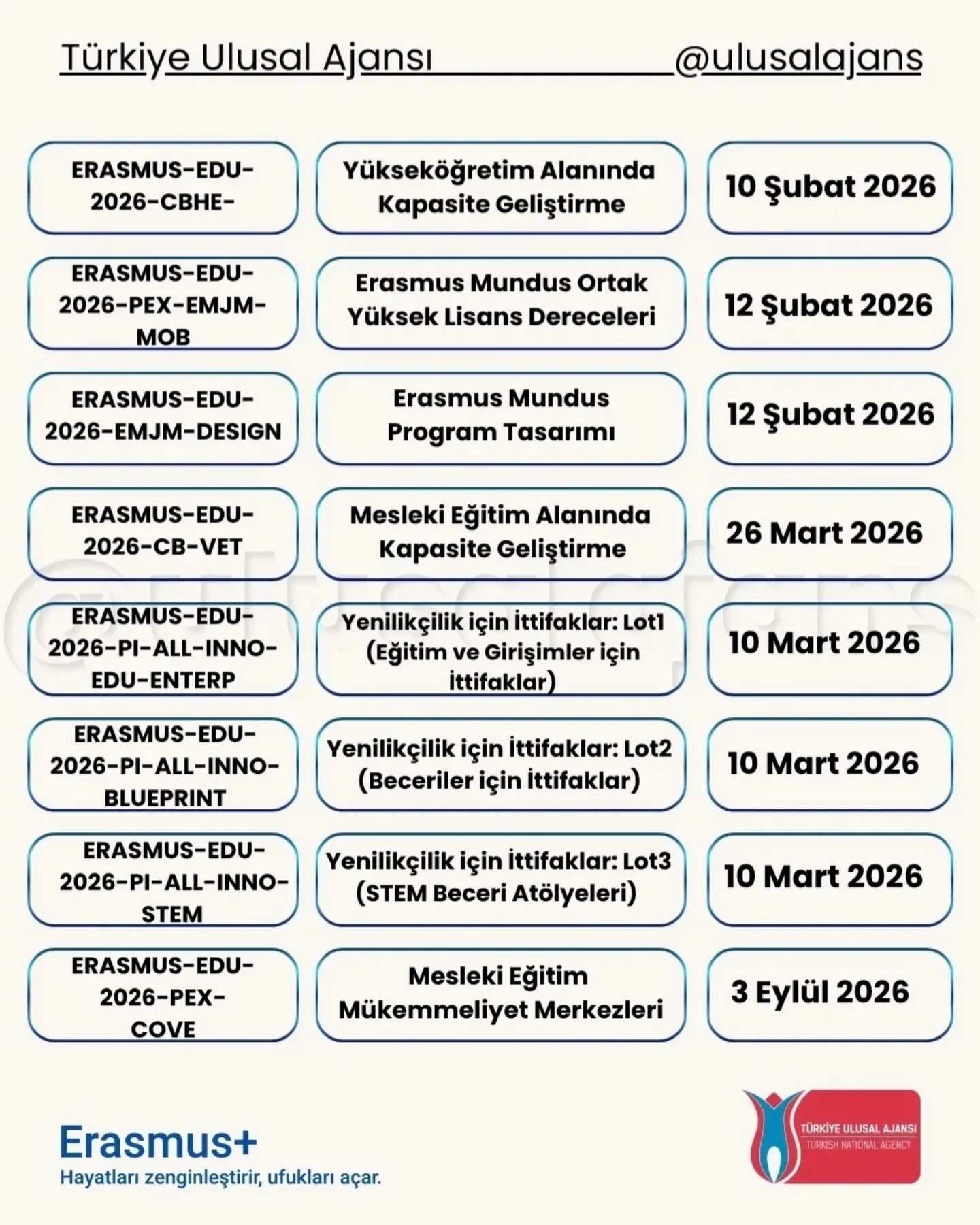 Ulusal Ajans'ın desteklediği Erasmus+ programı kapsamında hayata geçirilecek projeler için başvurular sürüyor. Karaman'ın eğitim, kültür ve gençlik alanlarındaki gelişimine katkı sağlaması hedeflenen projeler, öğrencilere ve kurumlara yeni ufuklar açma potansiyeli taşıyor. İlgili vatandaşların ve kurumların, başvuru süreçleri ve tarihler hakkında detaylı bilgi almaları tavsiye ediliyor.Editör: Haber MerkeziKaynak: Sosyal Medya